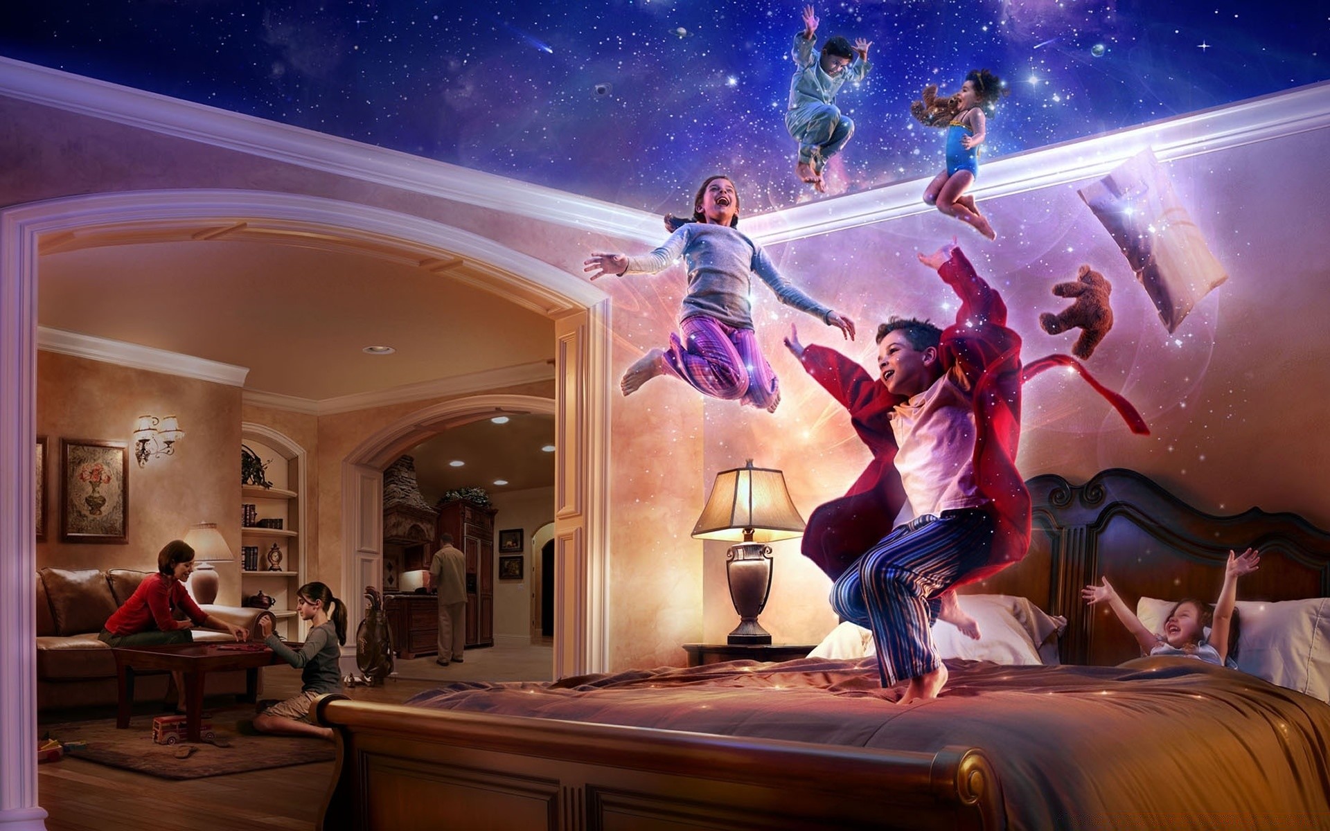 Kreatives Bild. Kinder mit Superkräften