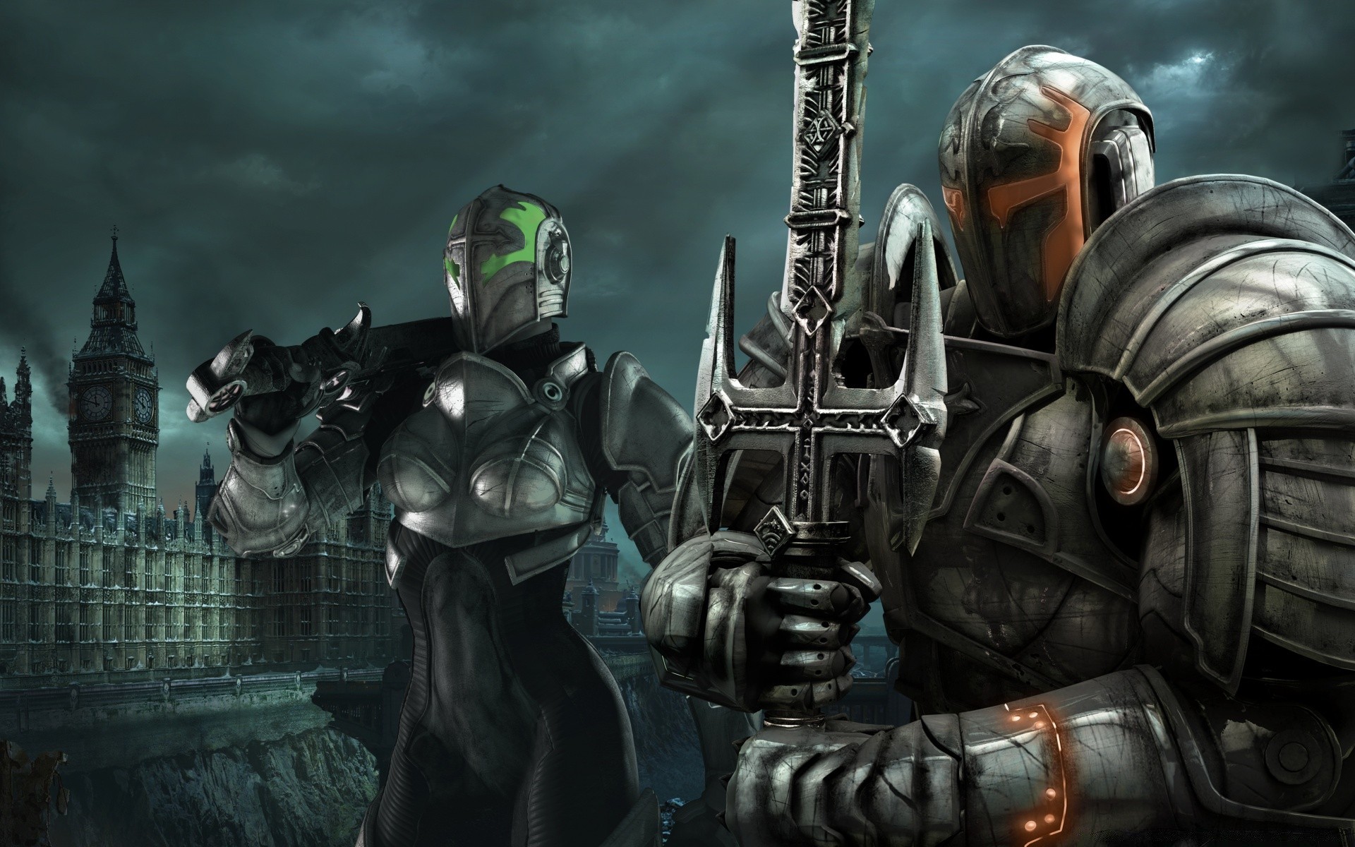 Ein Mann tötet mit einem Stab fliegende Drachen
