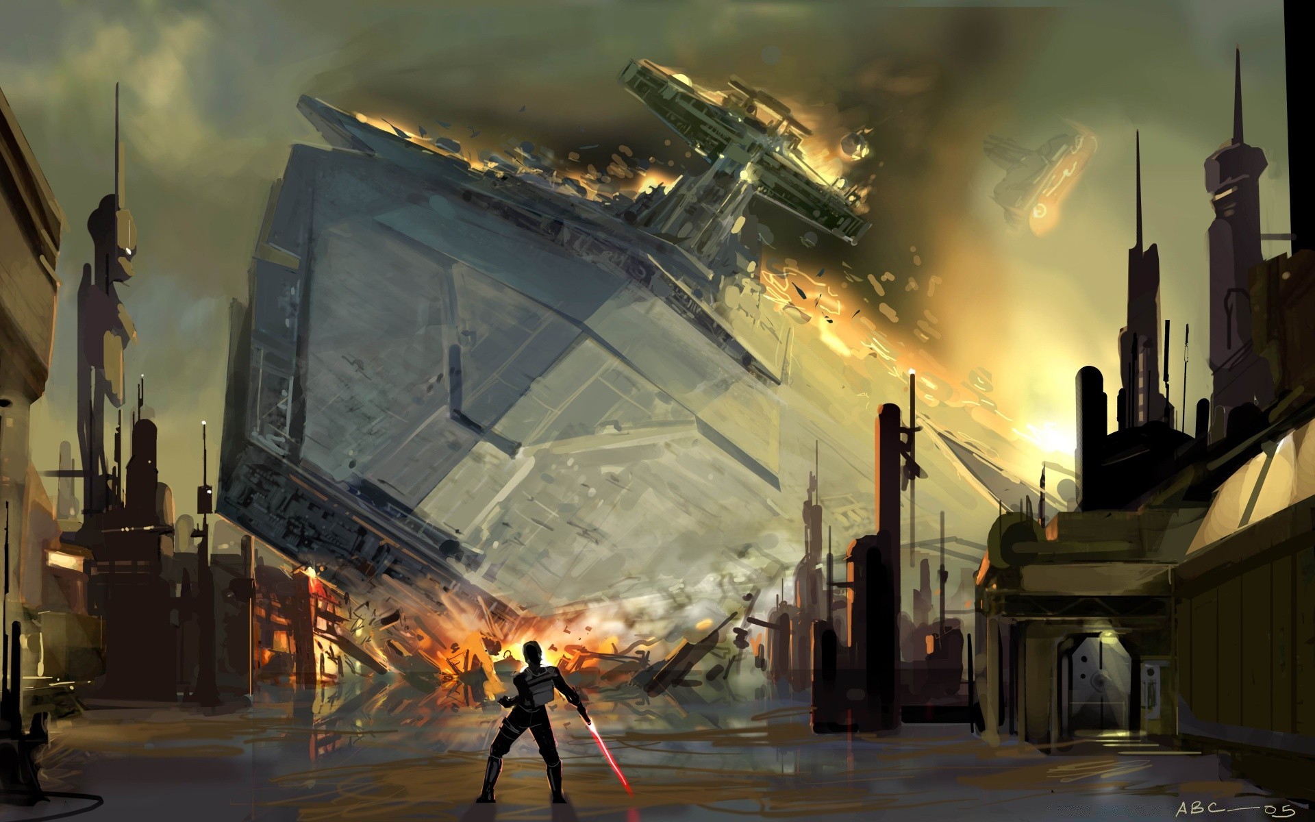 Krieger vor dem Hintergrund eines abgestürzten Raumschiffs