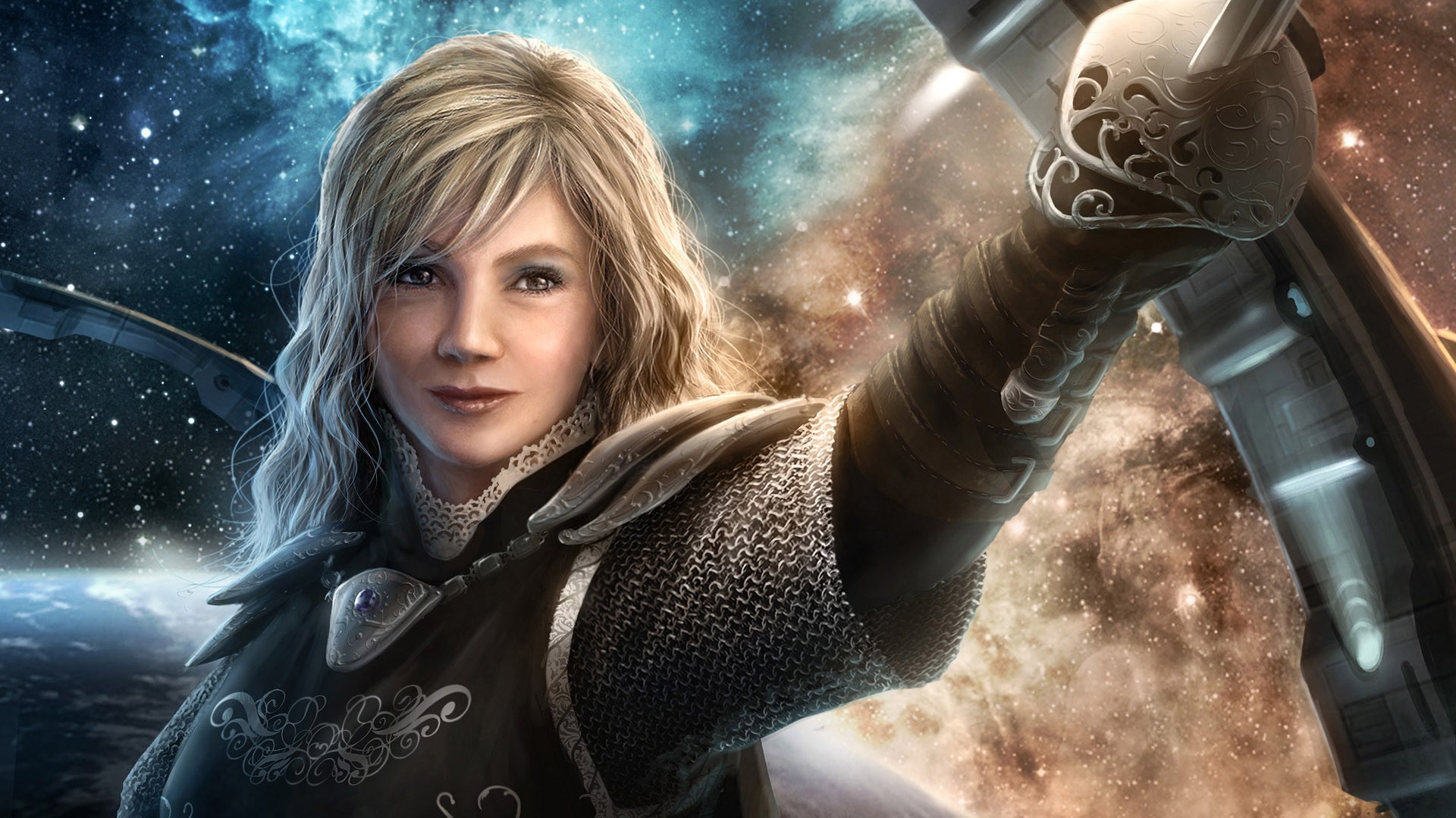 Ein Krieger aus Computerspielen schießt aus einem Maschinengewehr