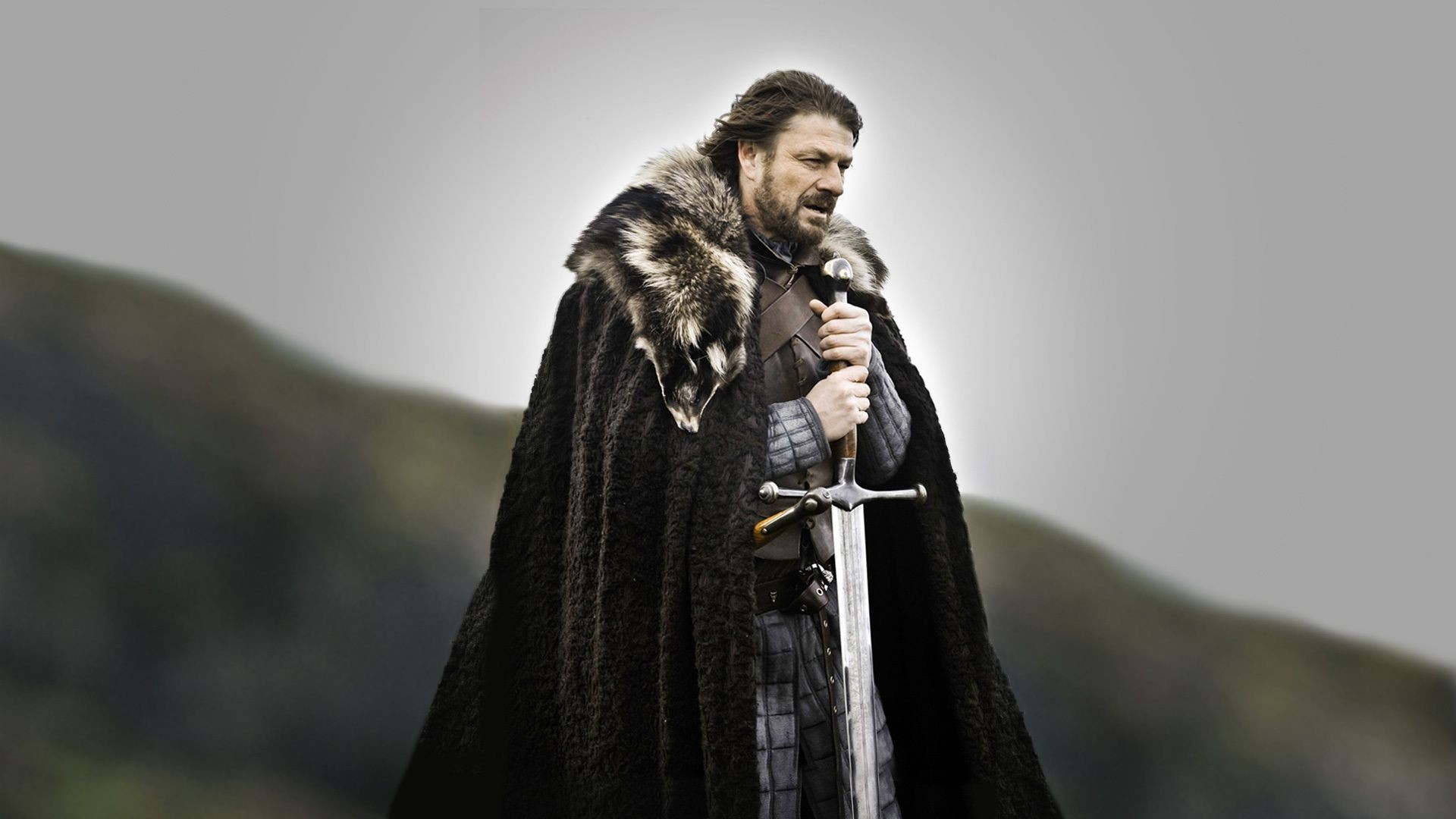Ein männlicher Krieger mit einem Schwert in den Händen