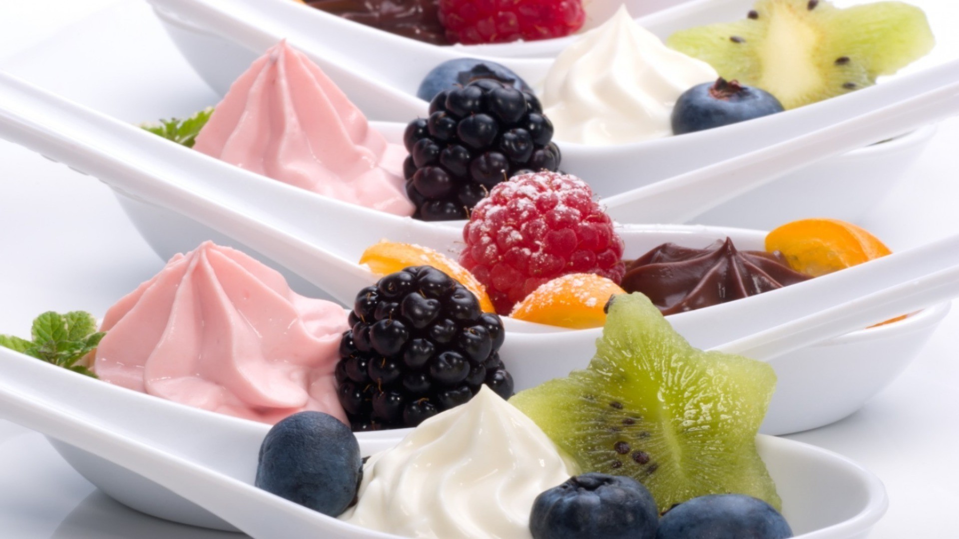 Dessert mit Gelee und Schokolade, garniert mit Beeren