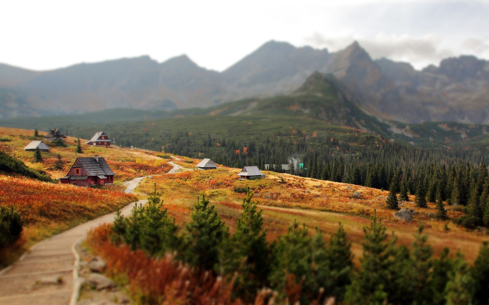 Wanderweg durch die herbstliche landschaft, der zum wald führtWanderweg durch die herbstliche Landschaft, der zum Wald führt