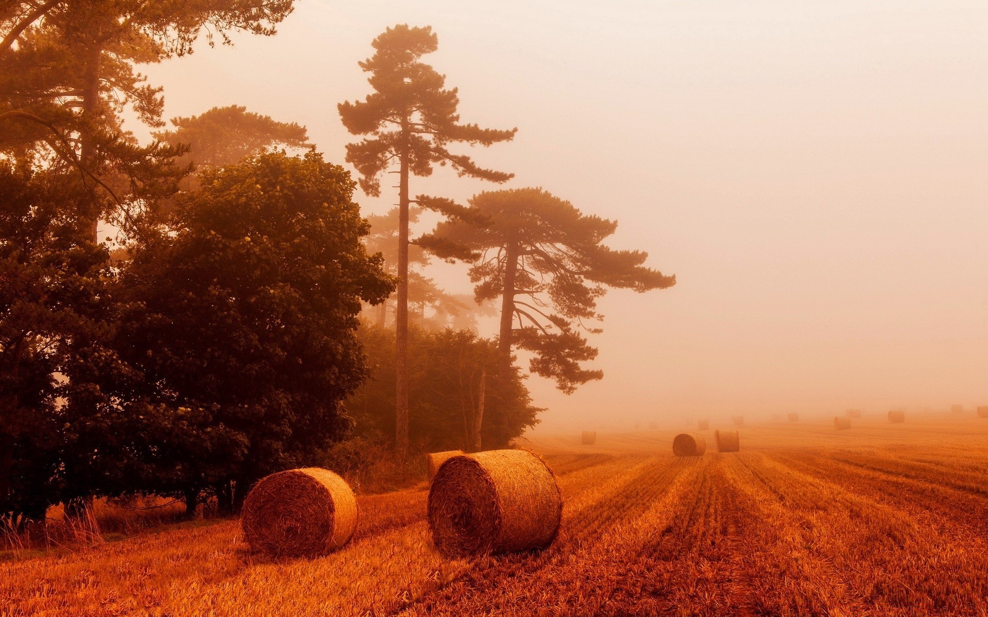 Herbsternte in der Nähe des Waldes
