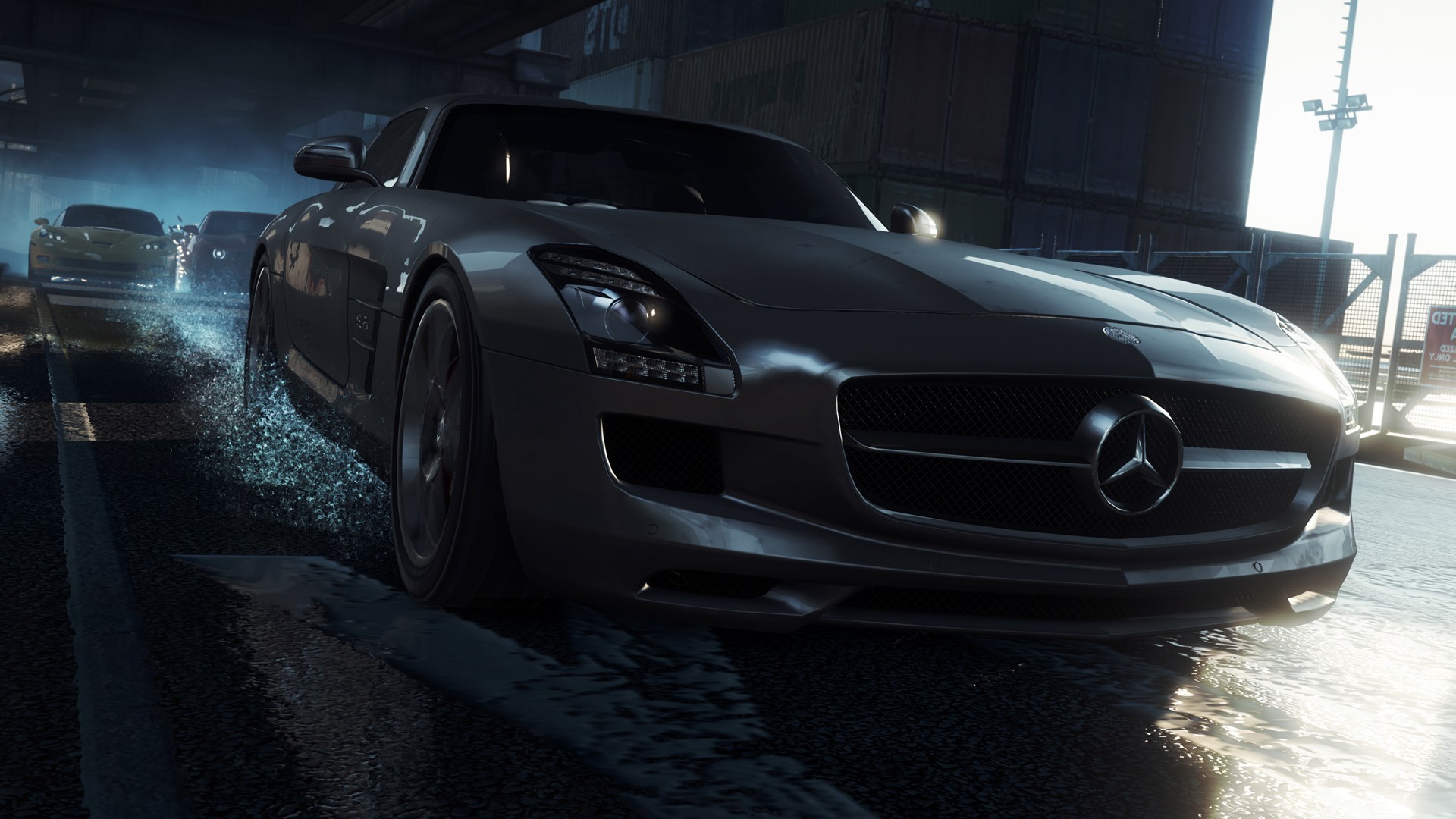 Industriegebiet-landschaften, geschwindigkeit auf nassem asphalt