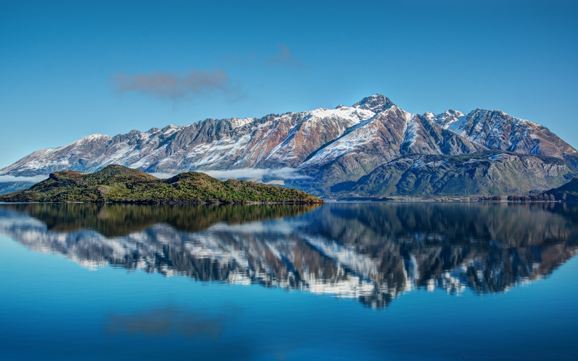 Transparenter See vor dem Hintergrund der schneebedeckten Berge