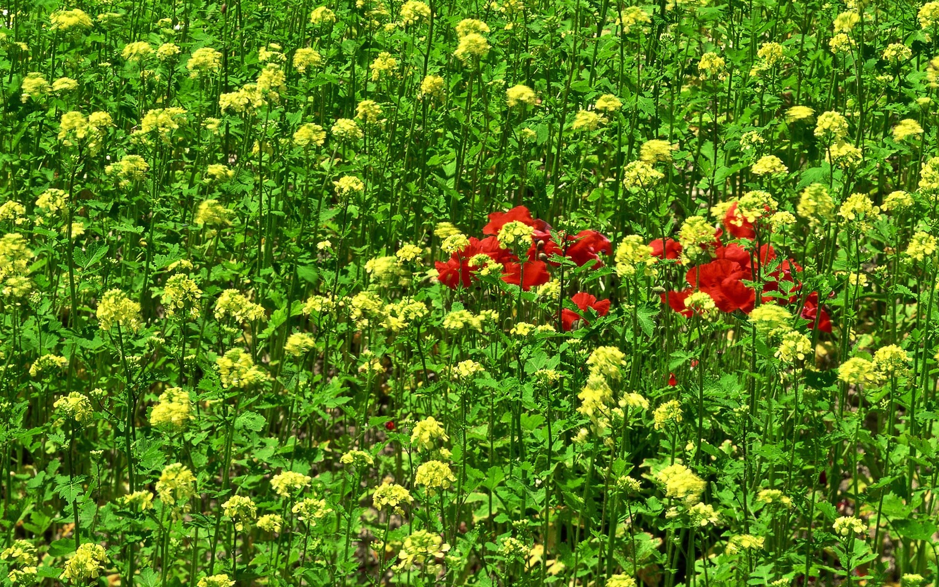 Ein roter busch auf einem grünen feld