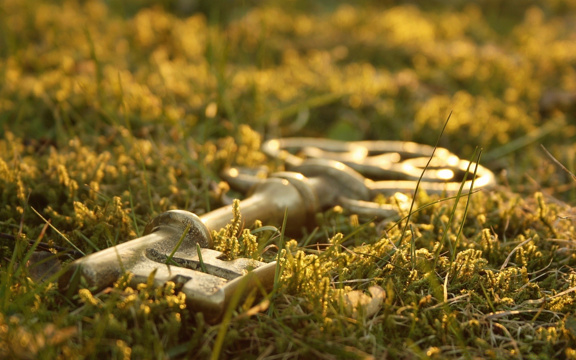 Nahaufnahme eines Schlüssels auf grünem Gras