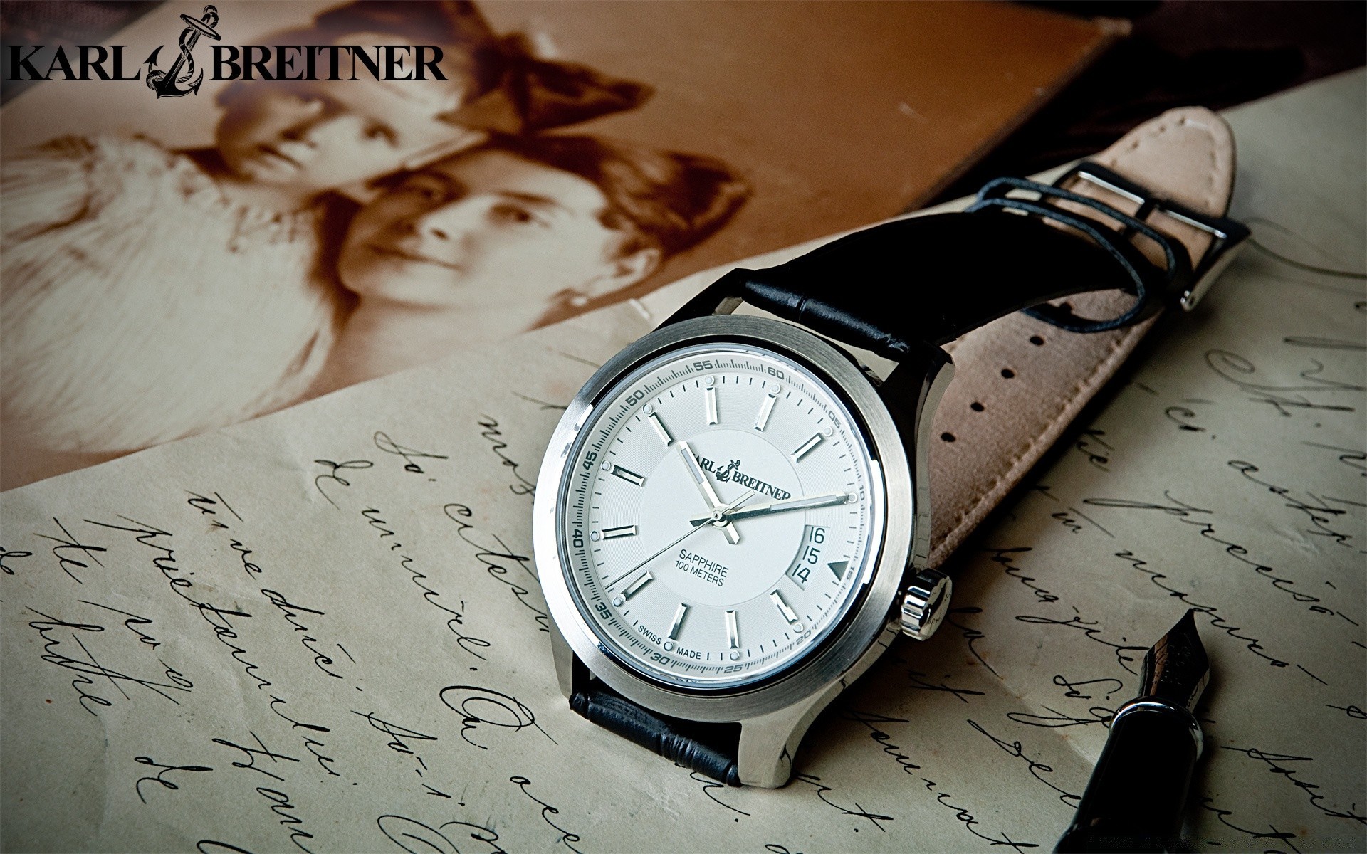 Silberne Uhr auf dem Hintergrund eines geschriebenen Briefes und eines Vintage-Fotos einer Mutter mit einem Kind
