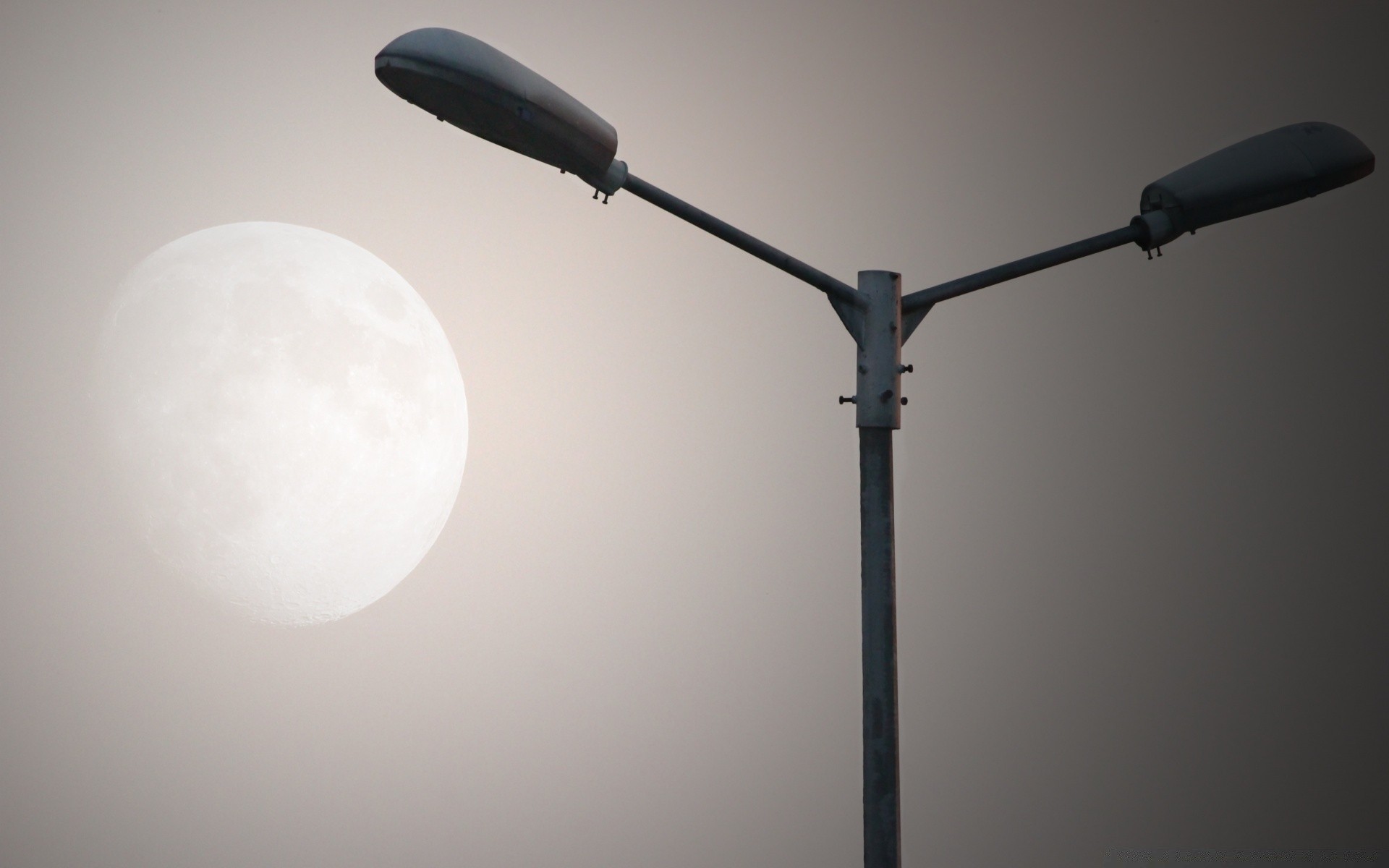 Einsame Laterne auf dem Hintergrund des schönen Mondes