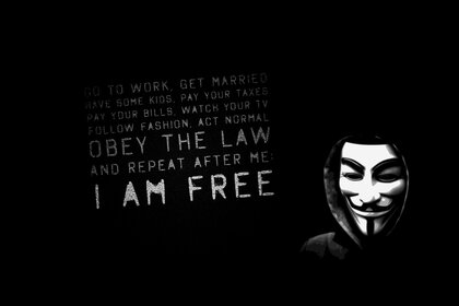 Dunkler Hintergrund. Maske. Vendetta. Der Text