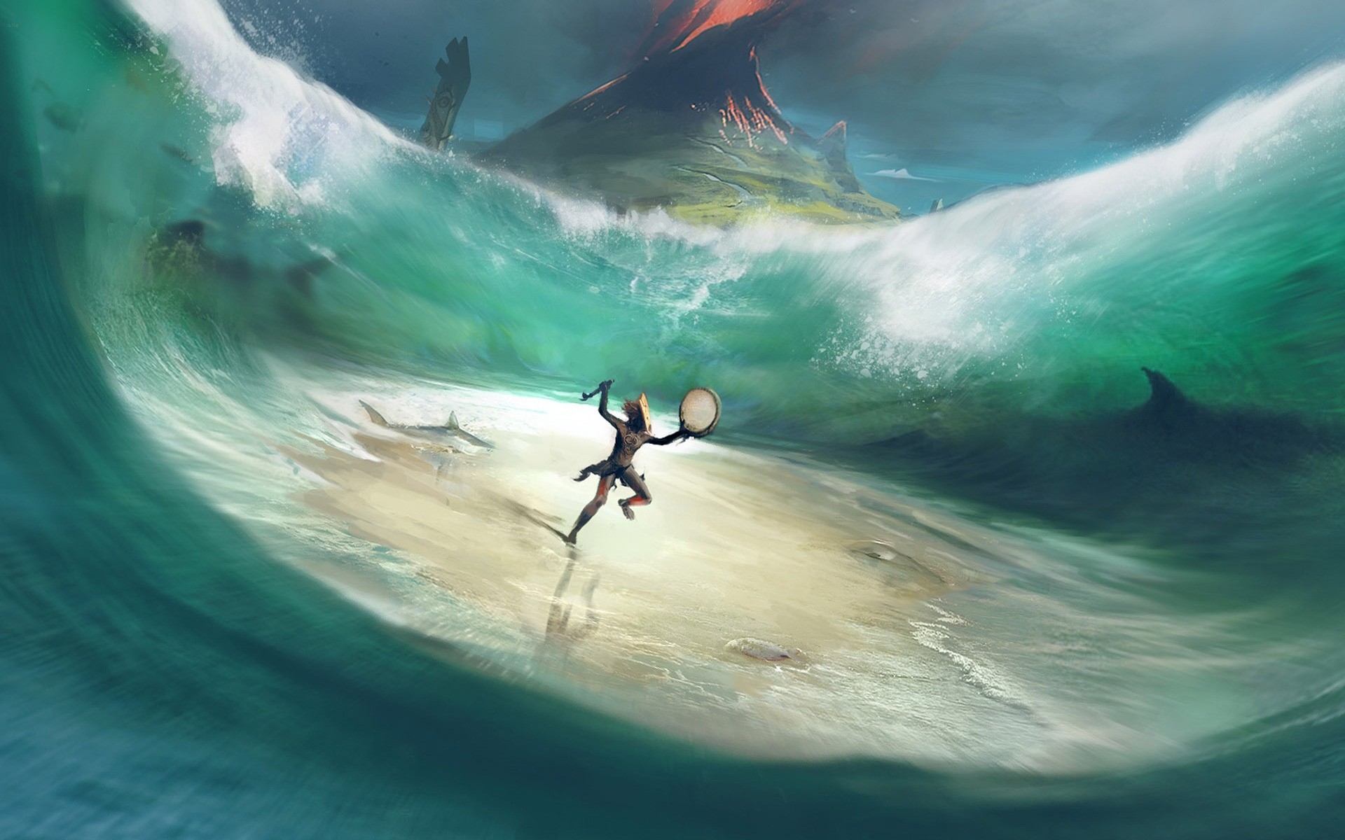Schamane, der die Wellen des Ozeans zerstreut