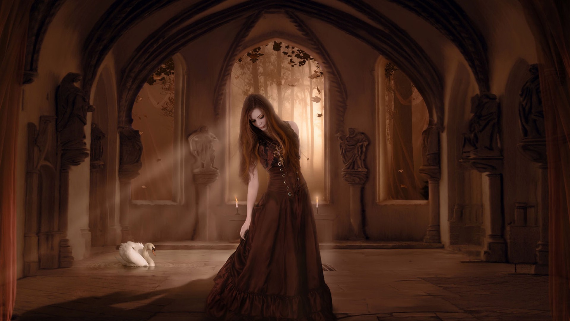 Fee und Schwan am Märchenteich