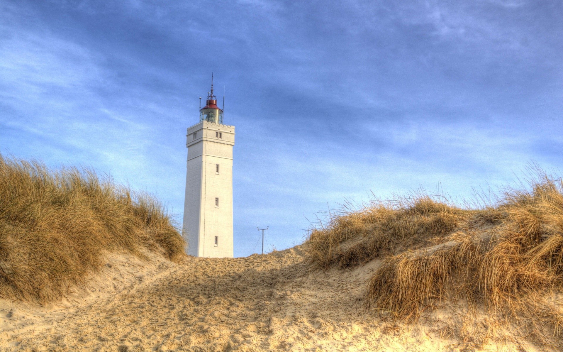 Hoher Leuchtturm am Sandstrand