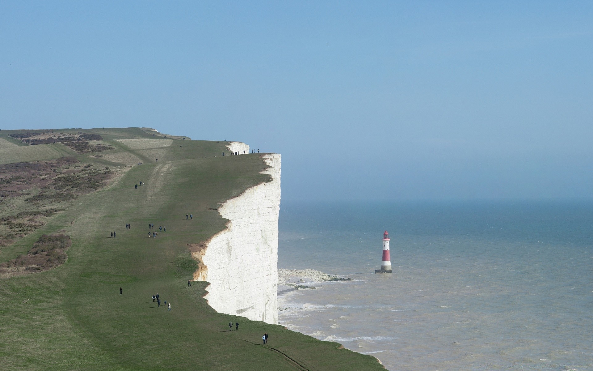 Hohe Klippe über dem Meer und dem Leuchtturm