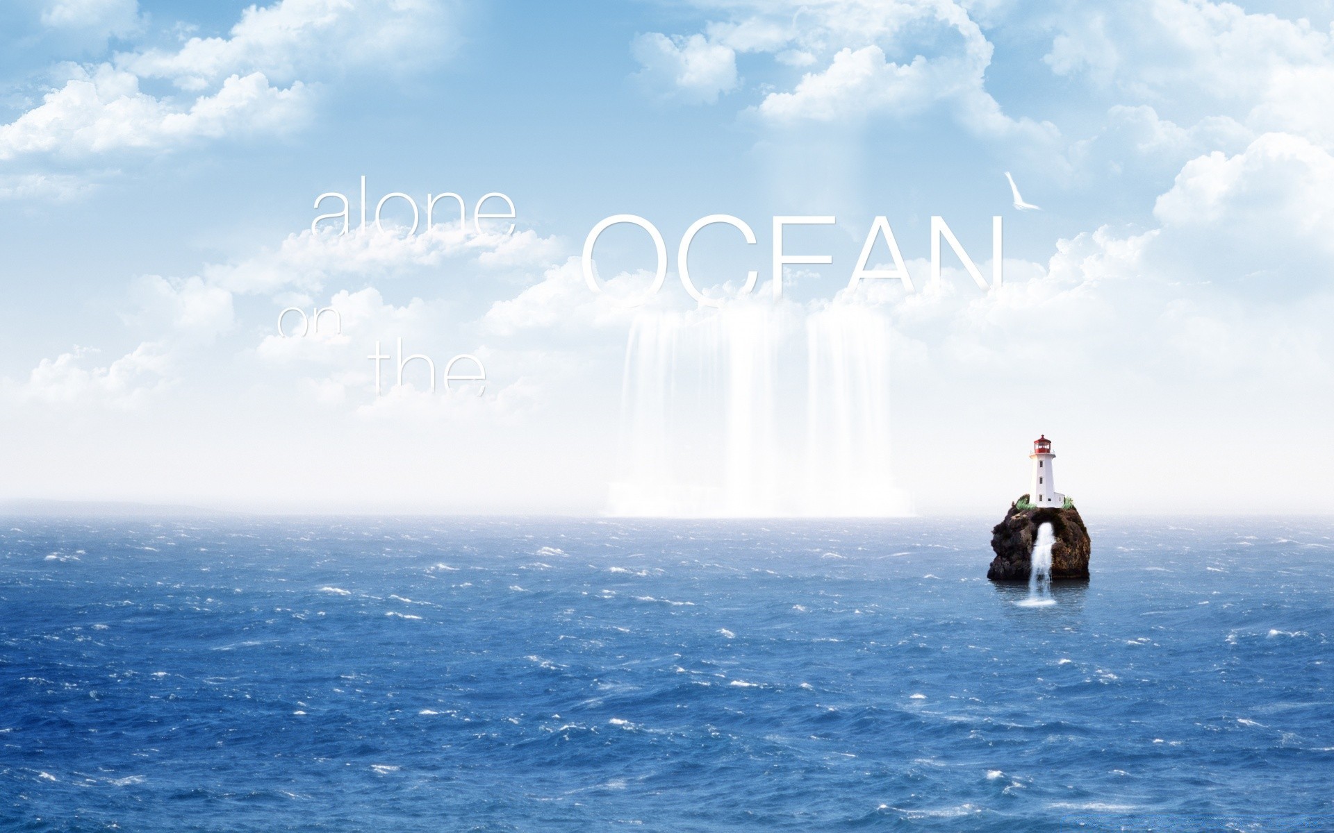 Der Ozean. Ein einsamer Leuchtturm. Himmel. Die Natur