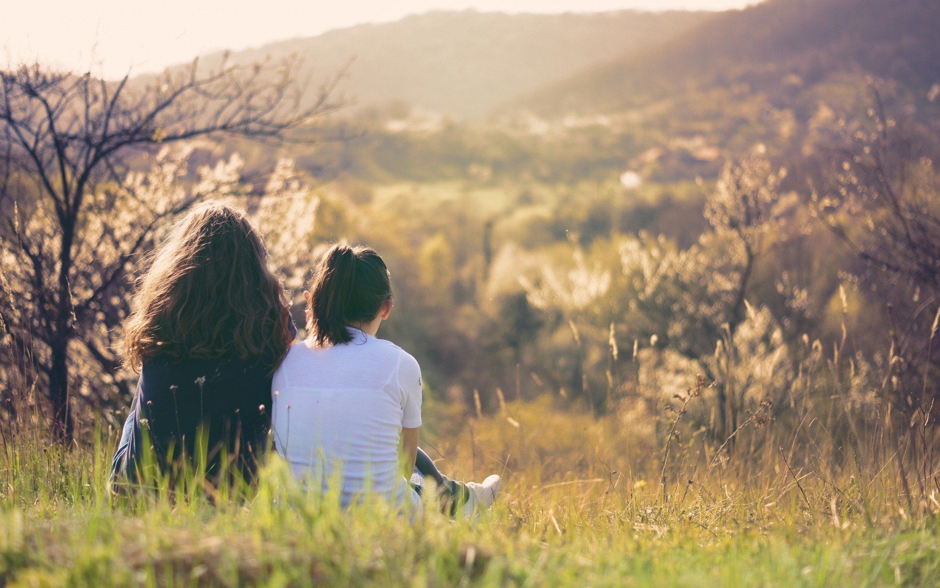 Ein paar mädchen, die eine schöne landschaft betrachtenEin paar Mädchen, die eine schöne Landschaft betrachten