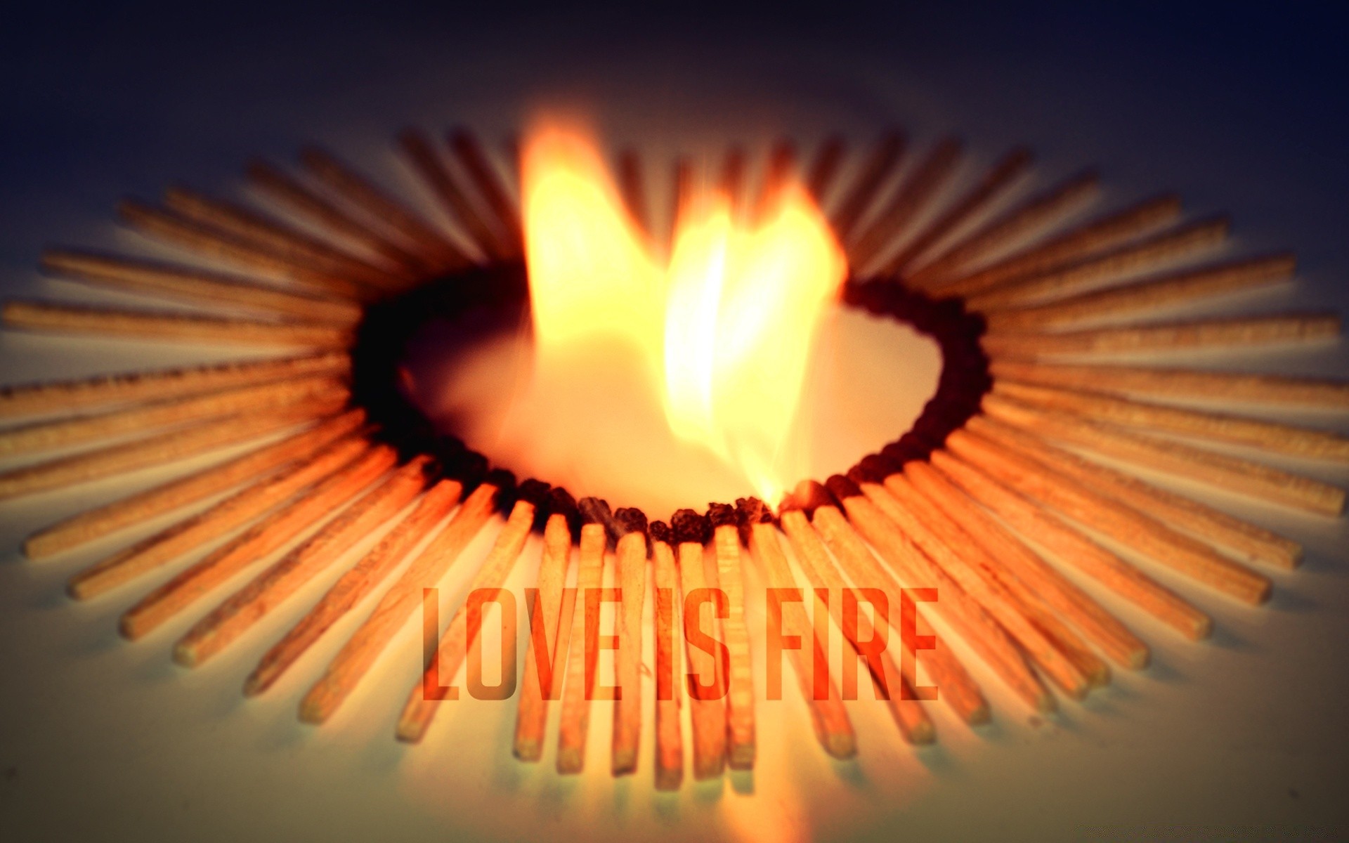 Flamme in der Mitte des Herzens aus Streichhölzern