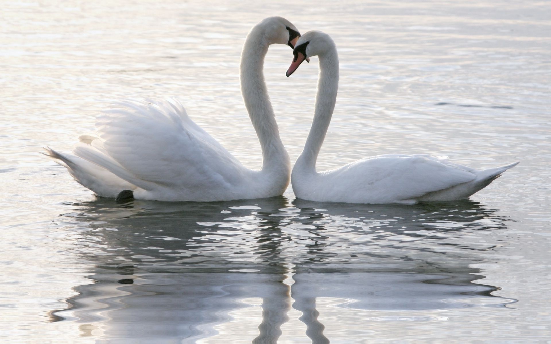 Zwei weiße Schwäne auf der Wasseroberfläche