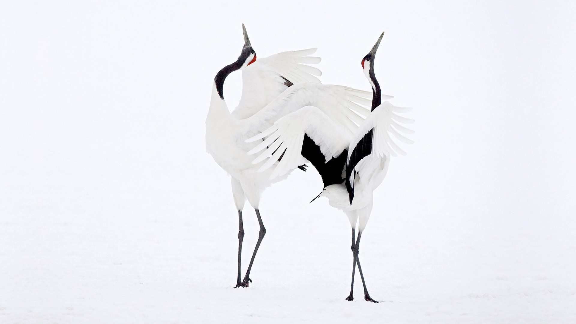 Wunderschöne Störche im Liebestanz