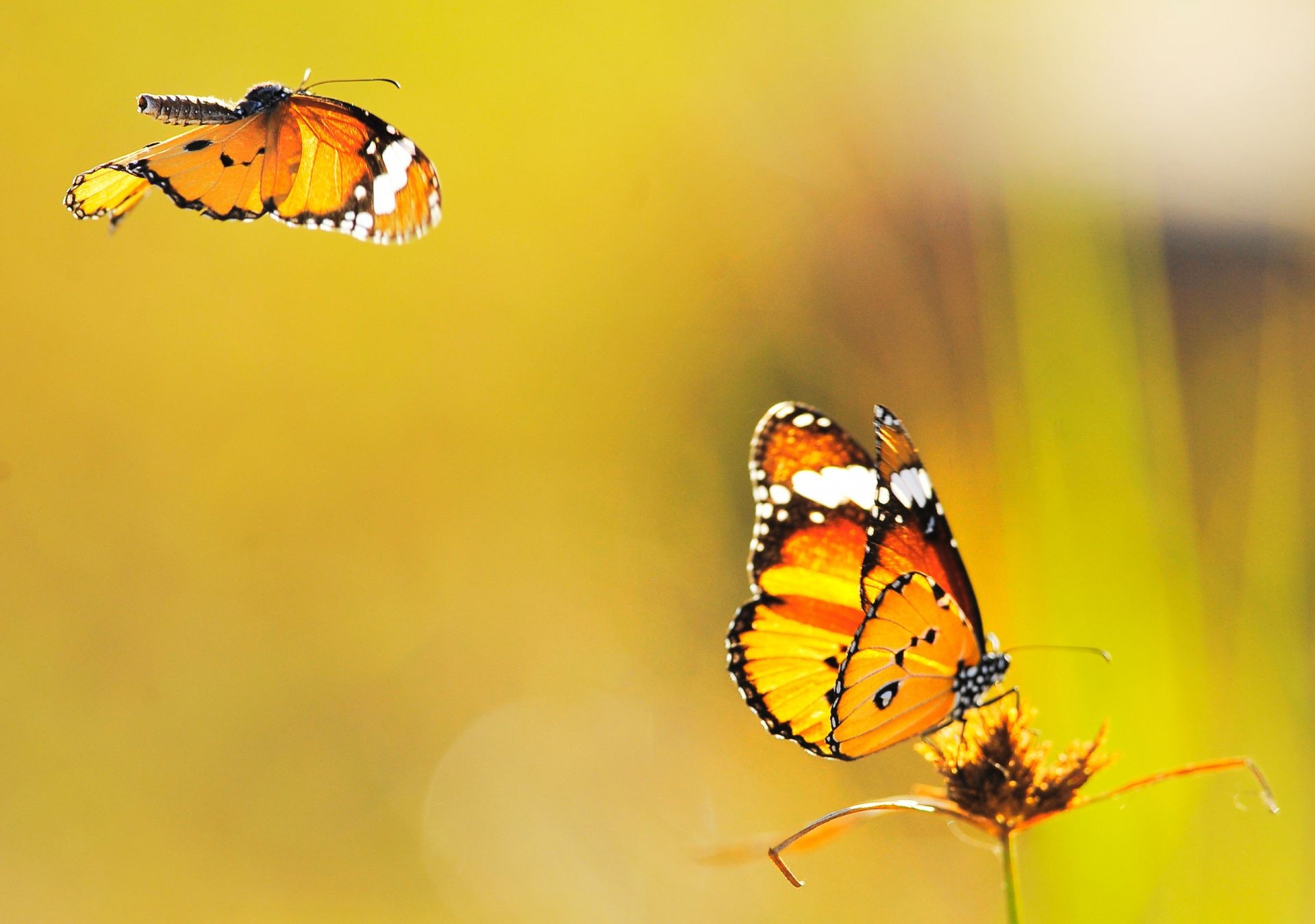 Schmetterlinge, die zu einer einsamen Blume kamen
