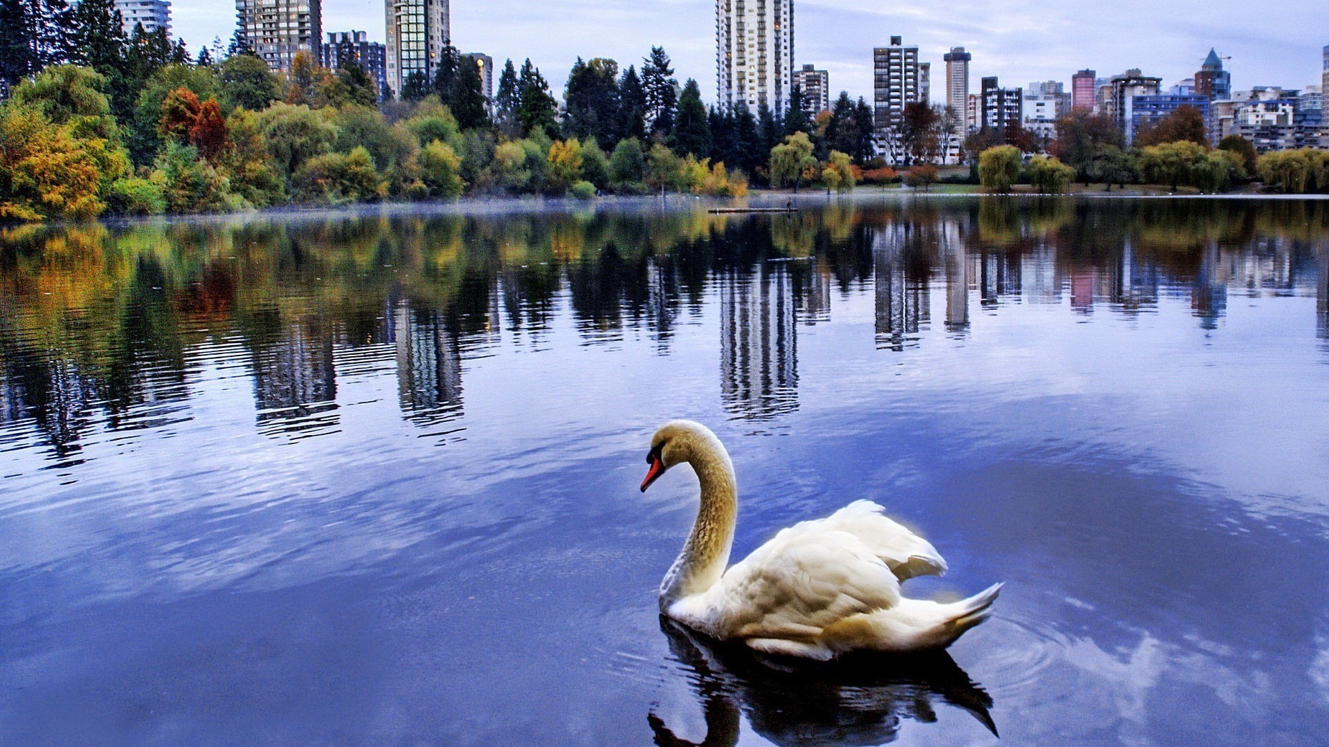 Anmutiger weißer Schwan im Teich