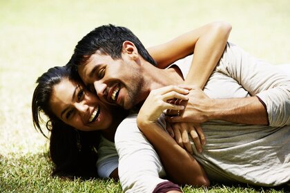 Liebespaar auf dem bett bei sonnenuntergang hintergrundLiebespaar auf dem Bett bei Sonnenuntergang Hintergrund