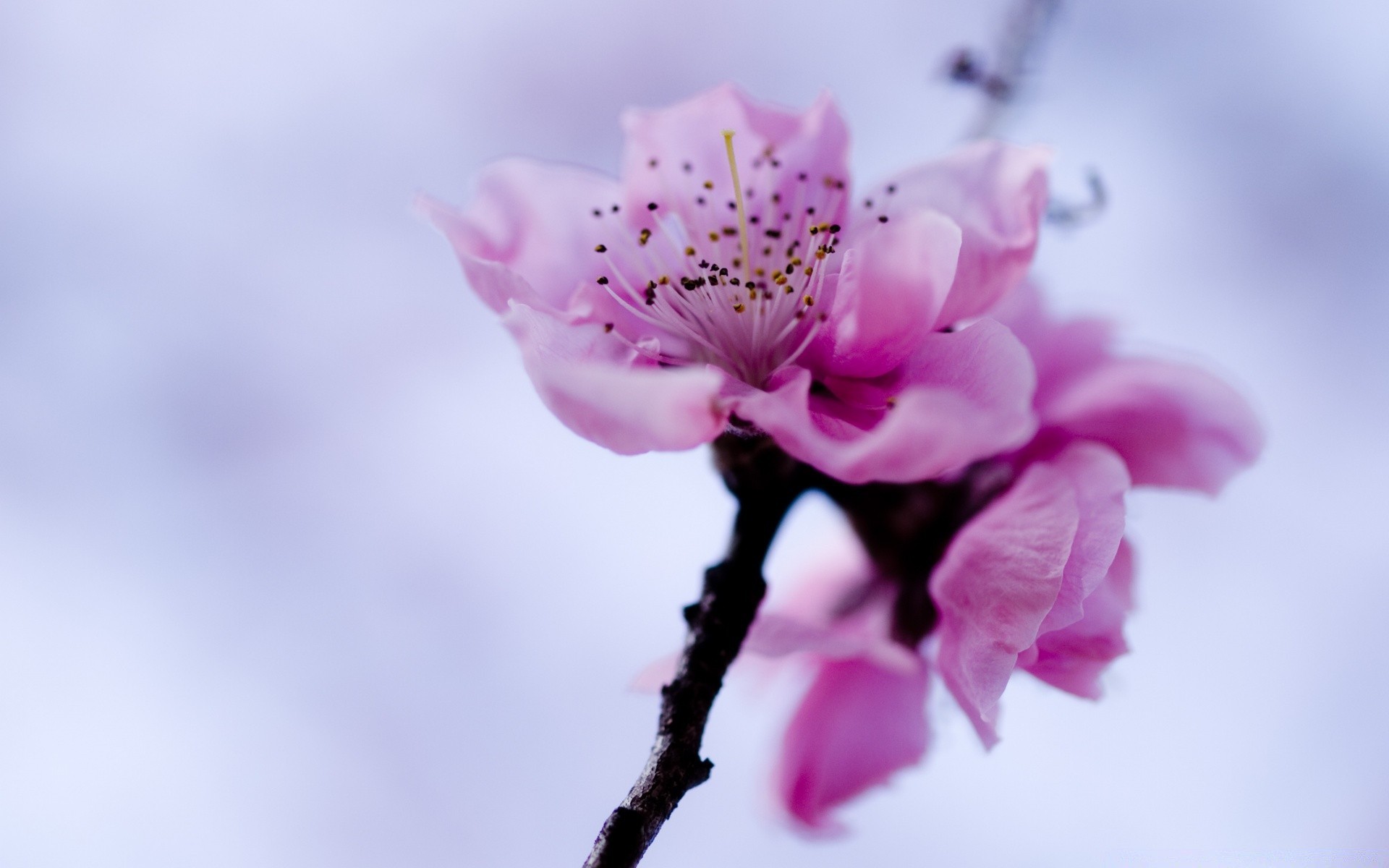 Sakura-Blume auf dem Hintergrund des verschwommenen Himmels
