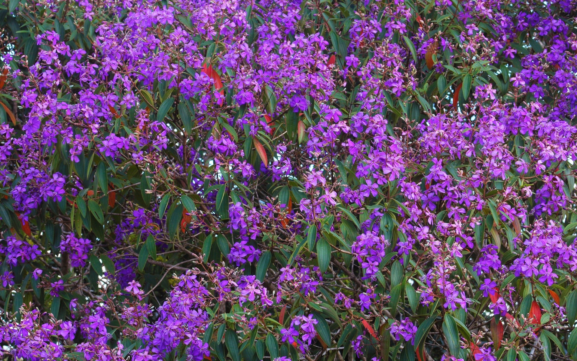 Schöne Blume mit einem lila Kern und lila geschnitzten Blütenblättern