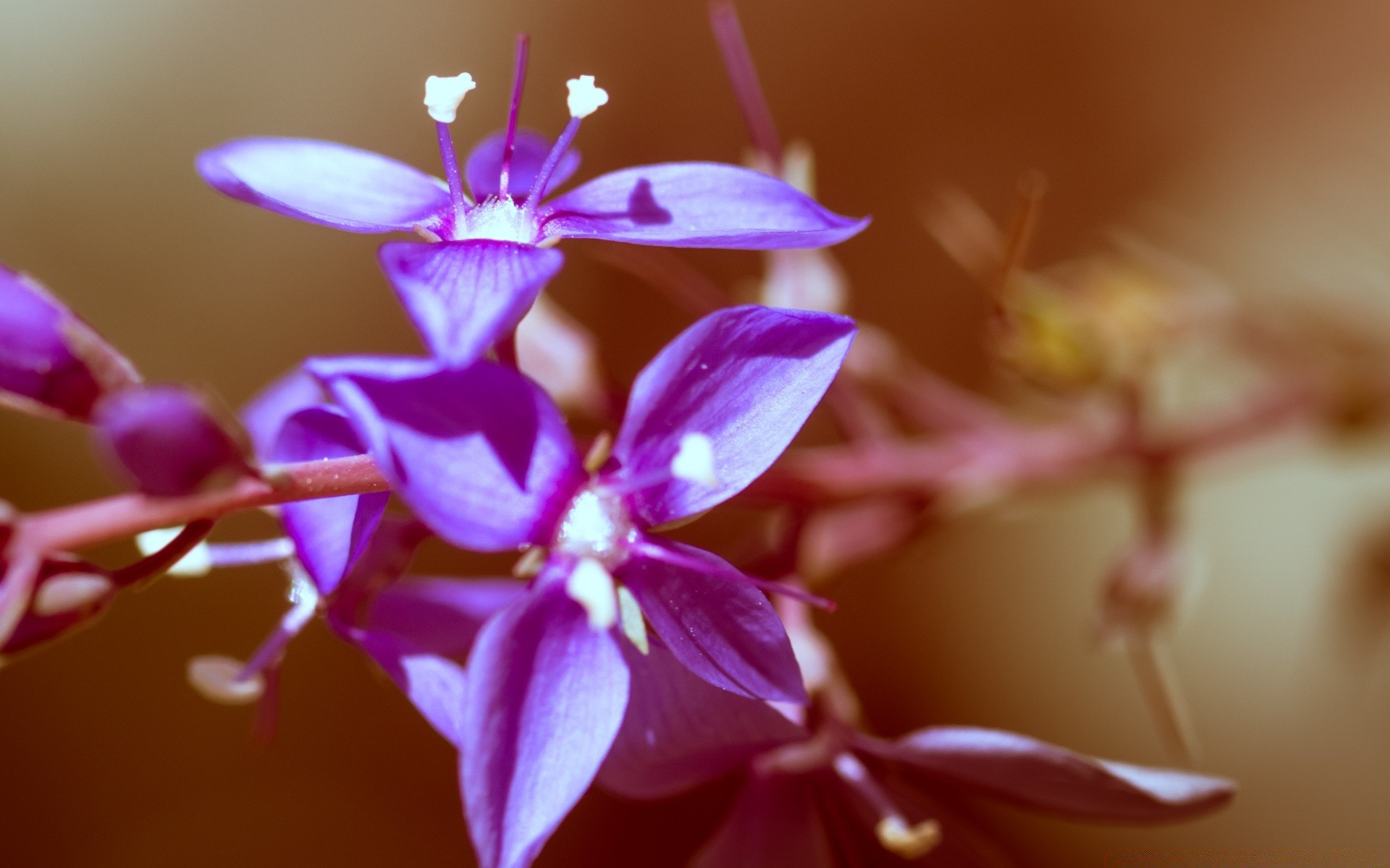 Lila Blüten. Glockenblumen. Grüne Stiele
