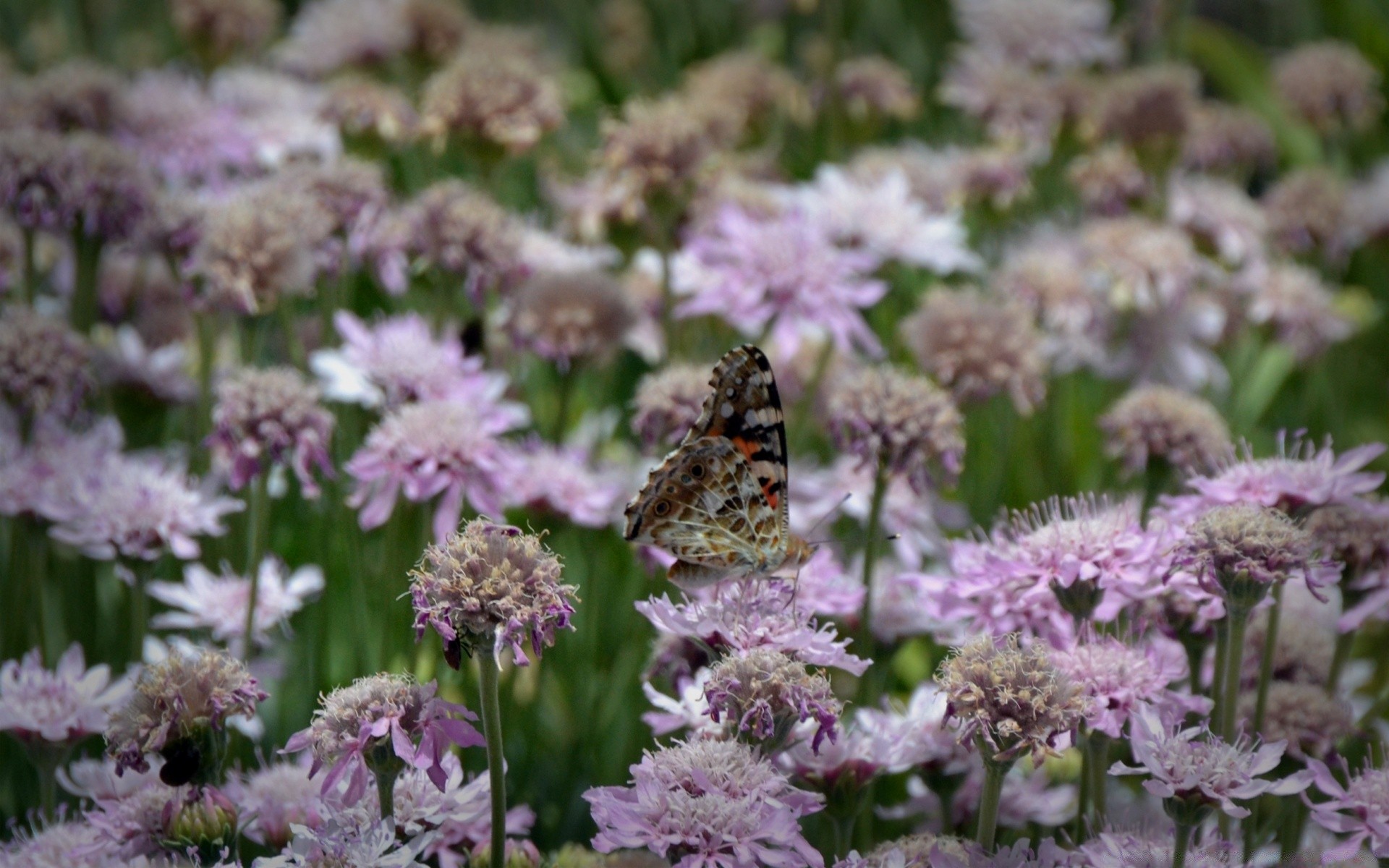 Ein schmetterling sammelt pollen von einer lila blumeEin Schmetterling sammelt Pollen von einer lila Blume