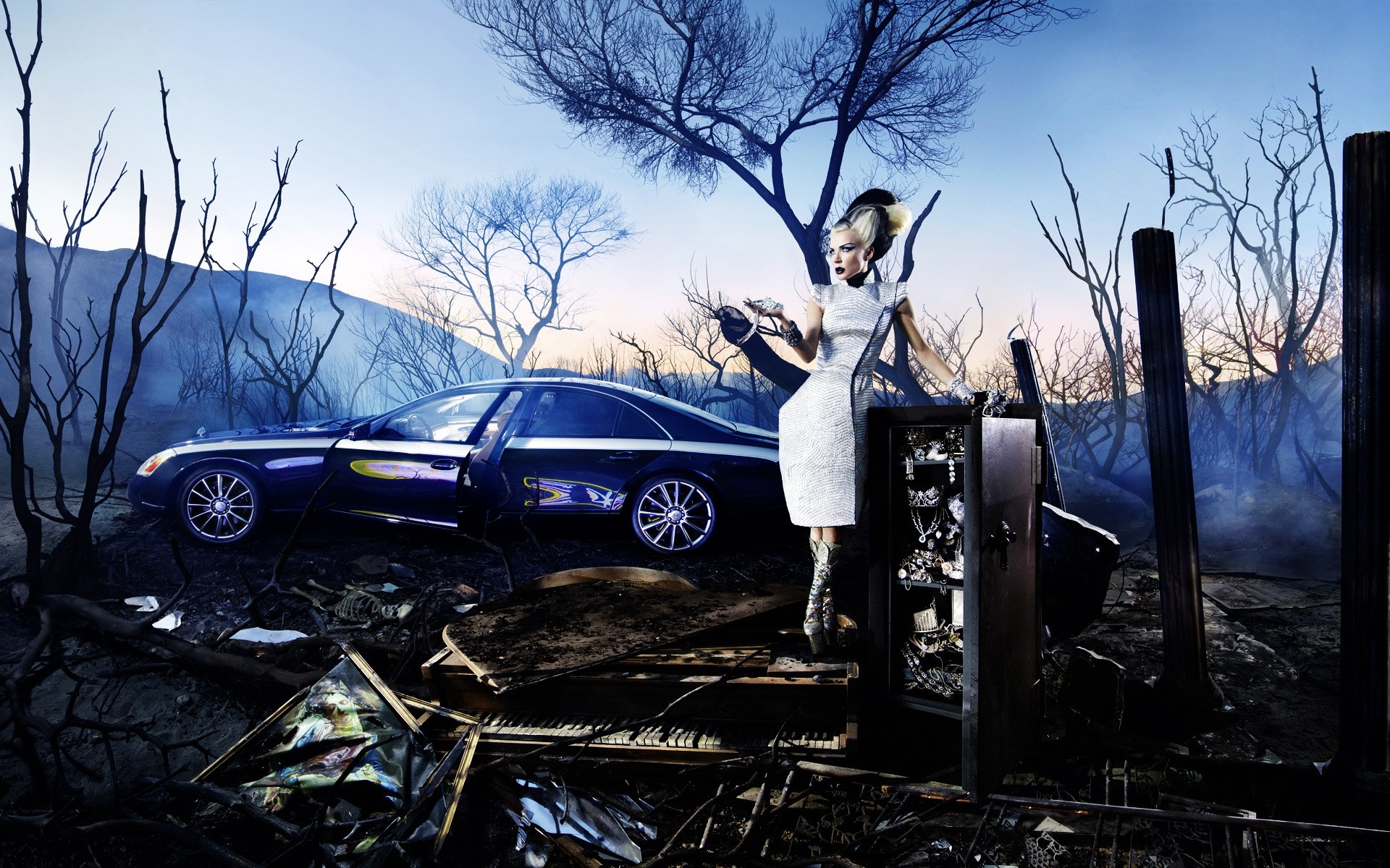 Maybach Limousine vor dem Hintergrund der Apokalypse