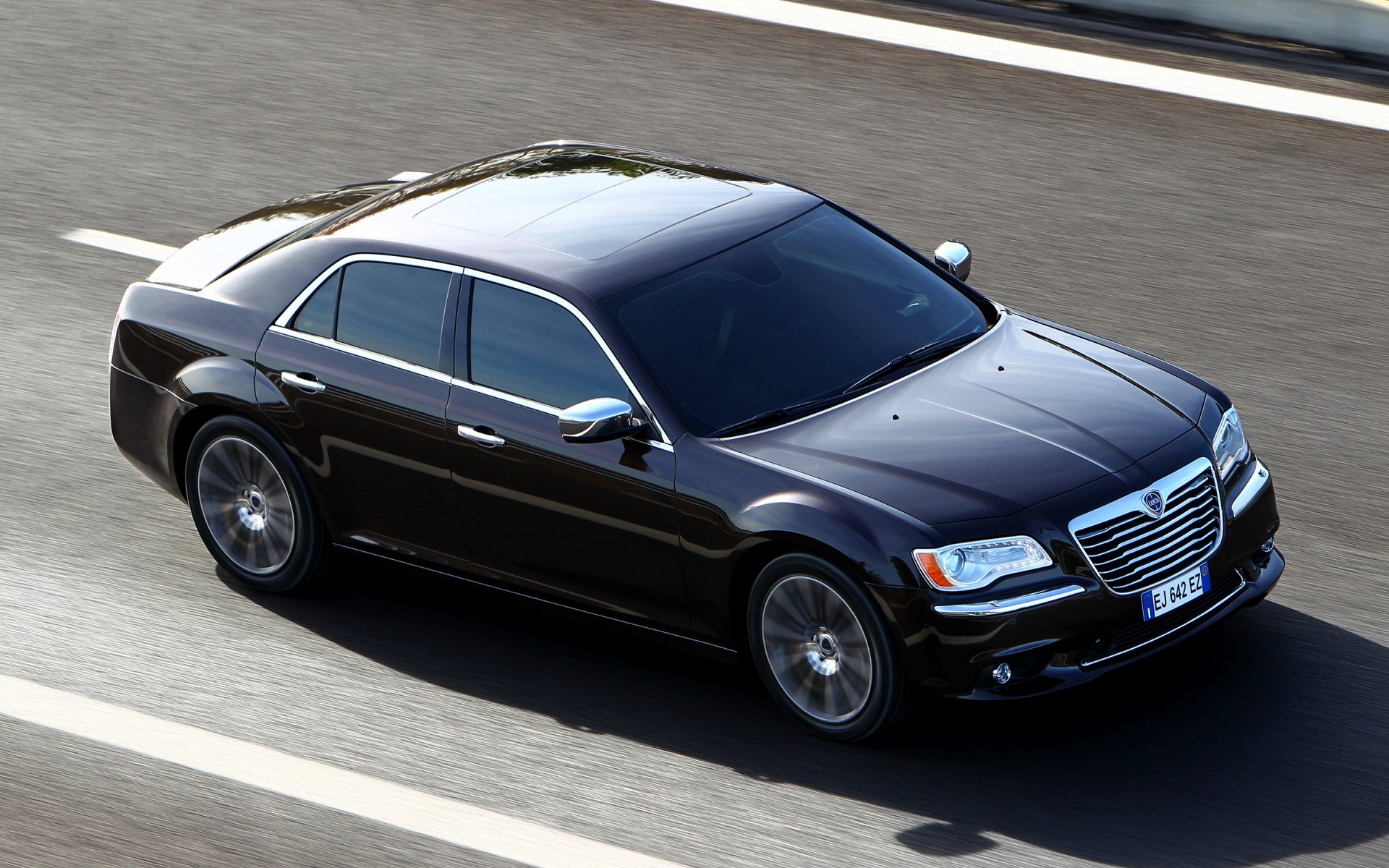Schwarzes Auto unterwegs auf der Strecke