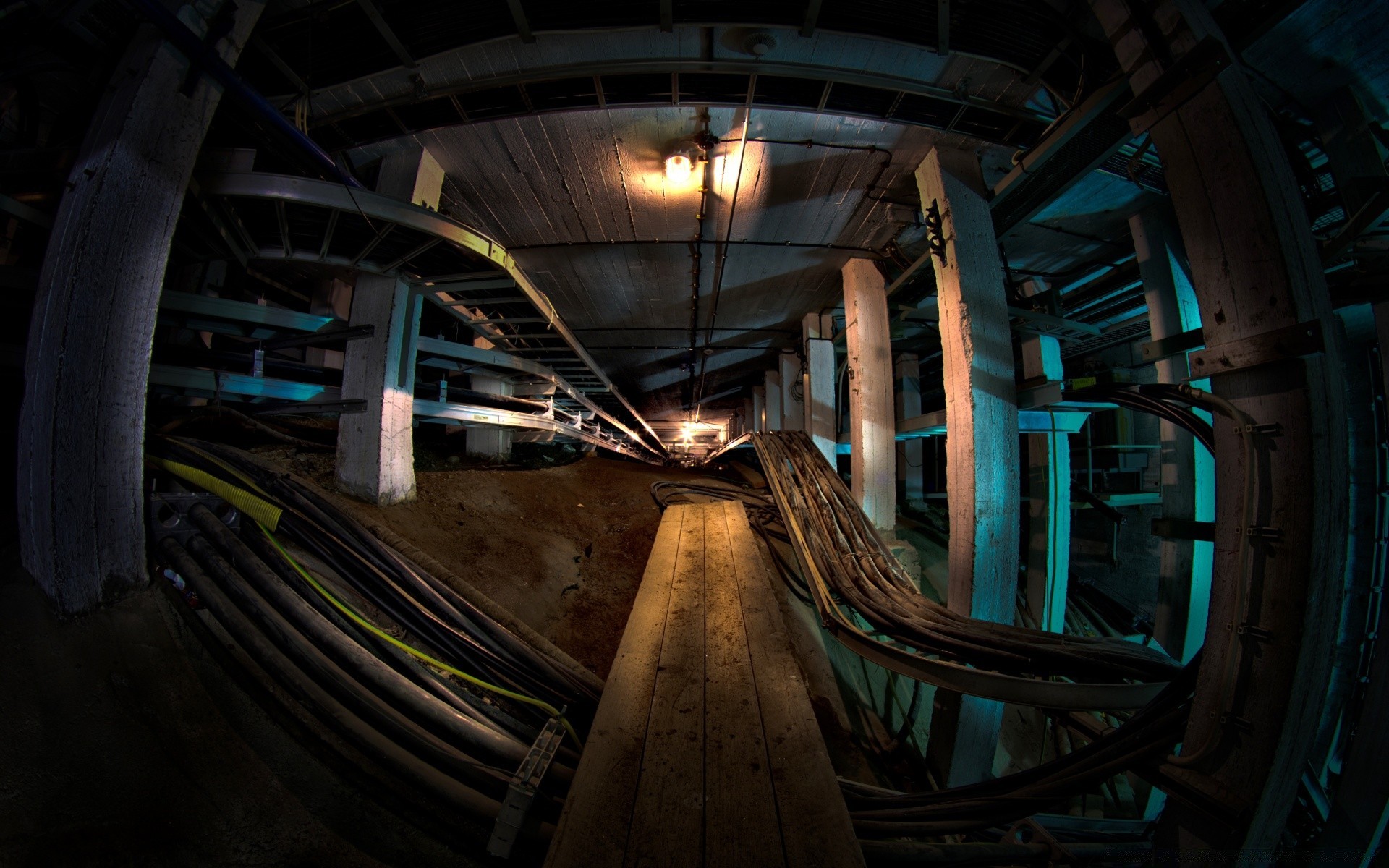 Ein einsamer Baum in einem grünen Feld mit kreativen Linien