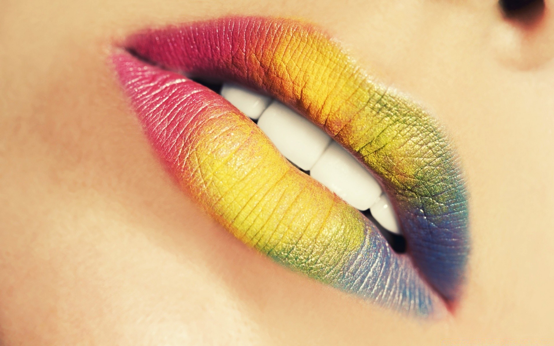 Heller mehrfarbiger Lippenstift auf den Lippen