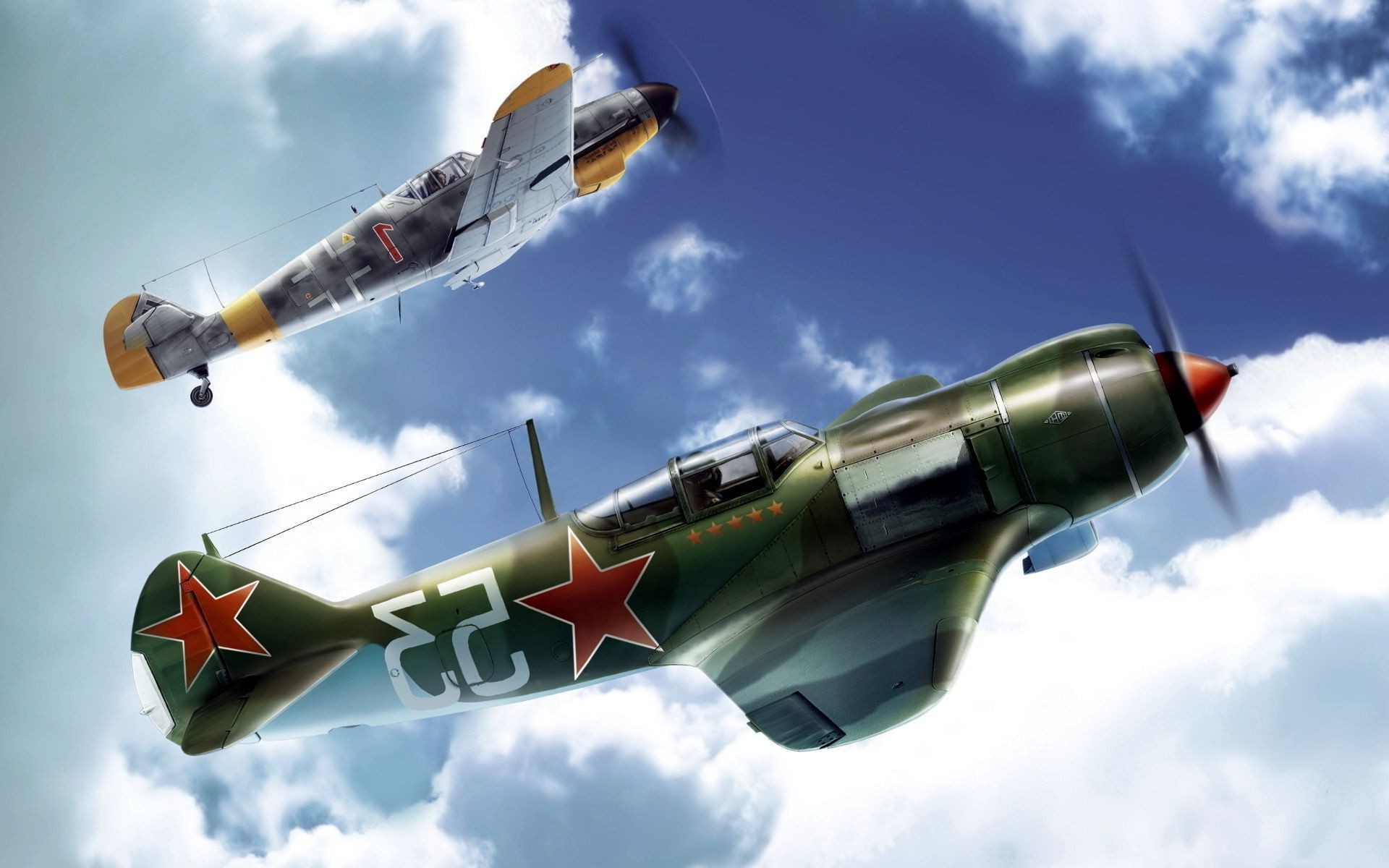 Militärflugzeuge mit roten Sternen