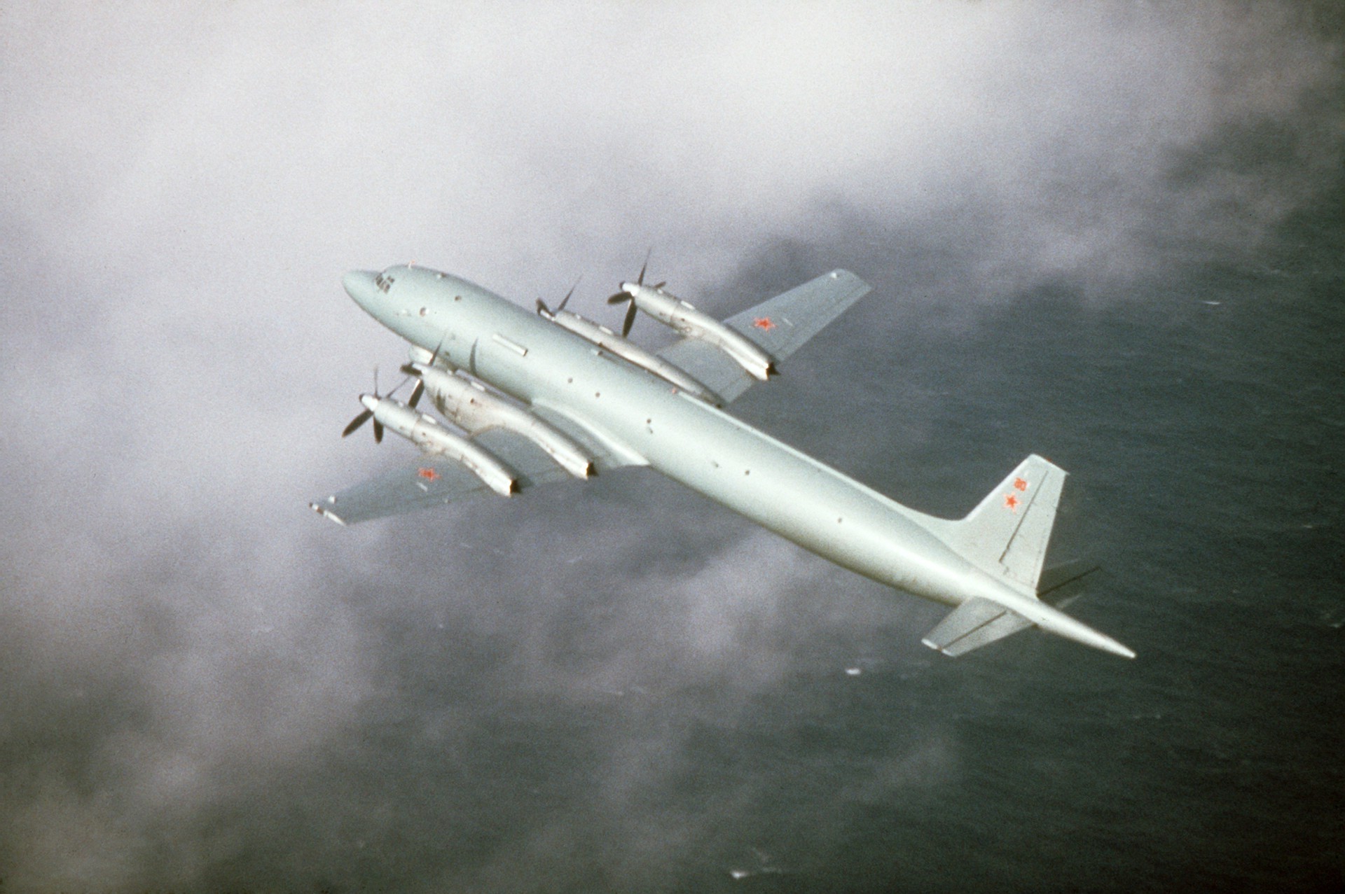 Begleitung eines transportflugzeugs mit vier kampfflugzeugenBegleitung eines Transportflugzeugs mit vier Kampfflugzeugen