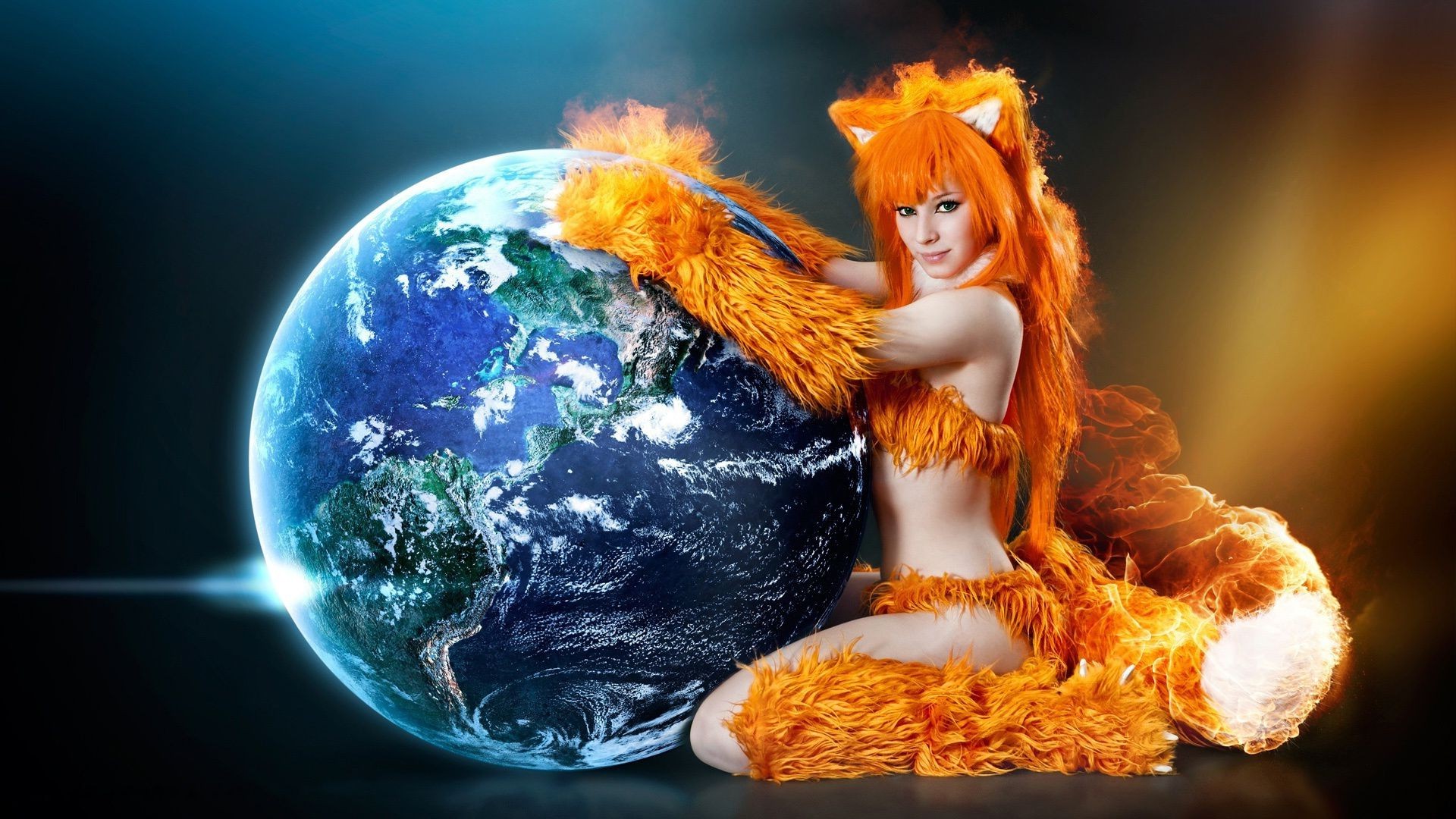 Frau Fuchs im Weltraum auf Hintergrund