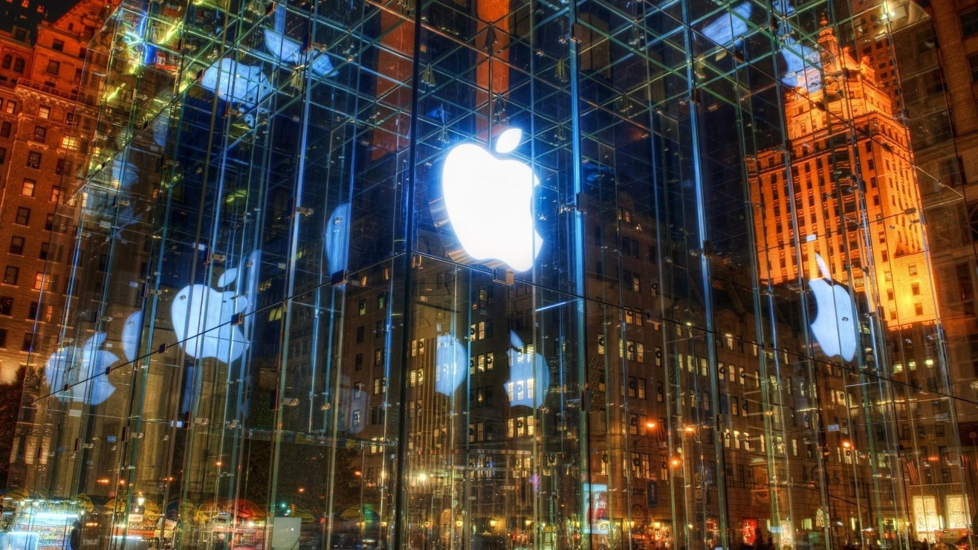 Computerausführung des apple-logos auf grünem hintergrundComputerausführung des Apple-Logos auf grünem Hintergrund