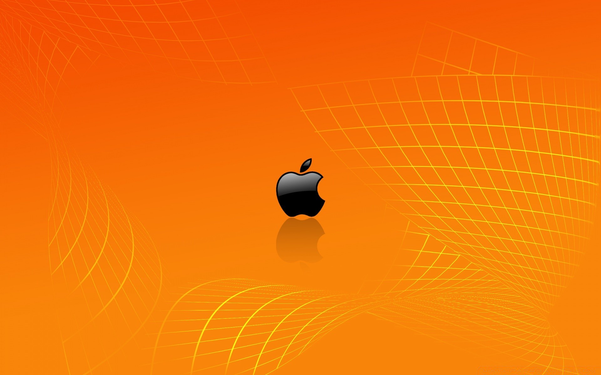 Schwarzes Mac-Logo auf orangefarbenem Hintergrund