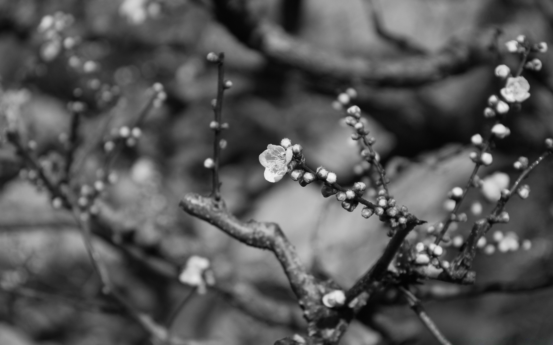 Die Blütezeit eines Baums in grauen Farben