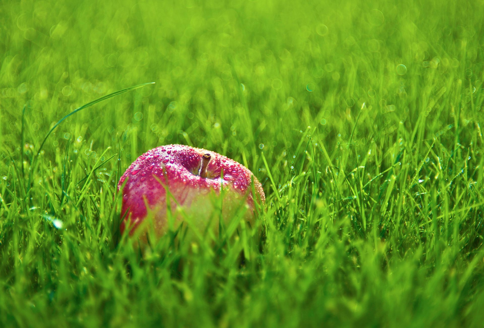 Saftiger Apfel im grünen Gras