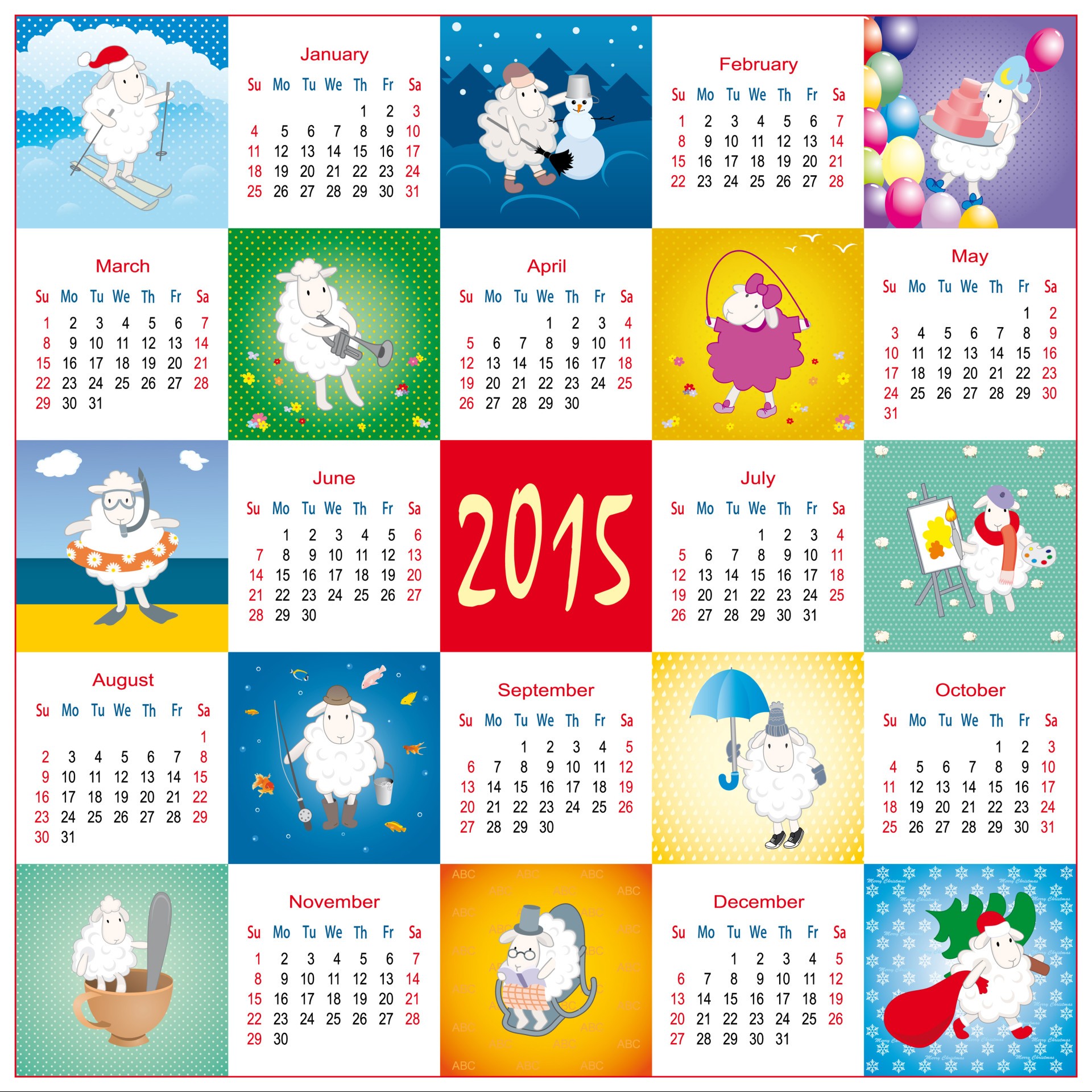 Lustiger Kalender für 2015 mit Cartoon-Schafen