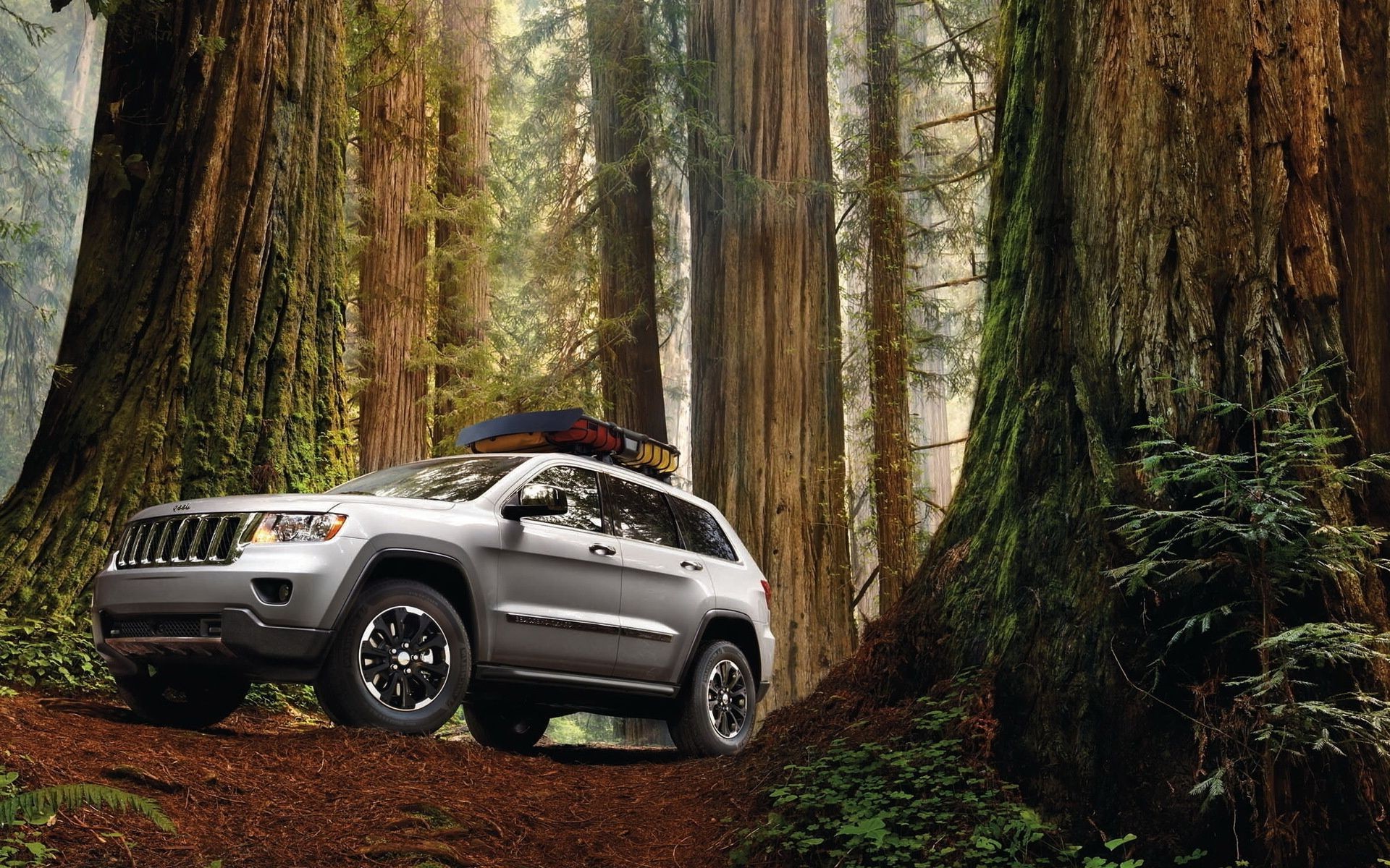 SUV im märchenhaften geheimnisvollen Wald