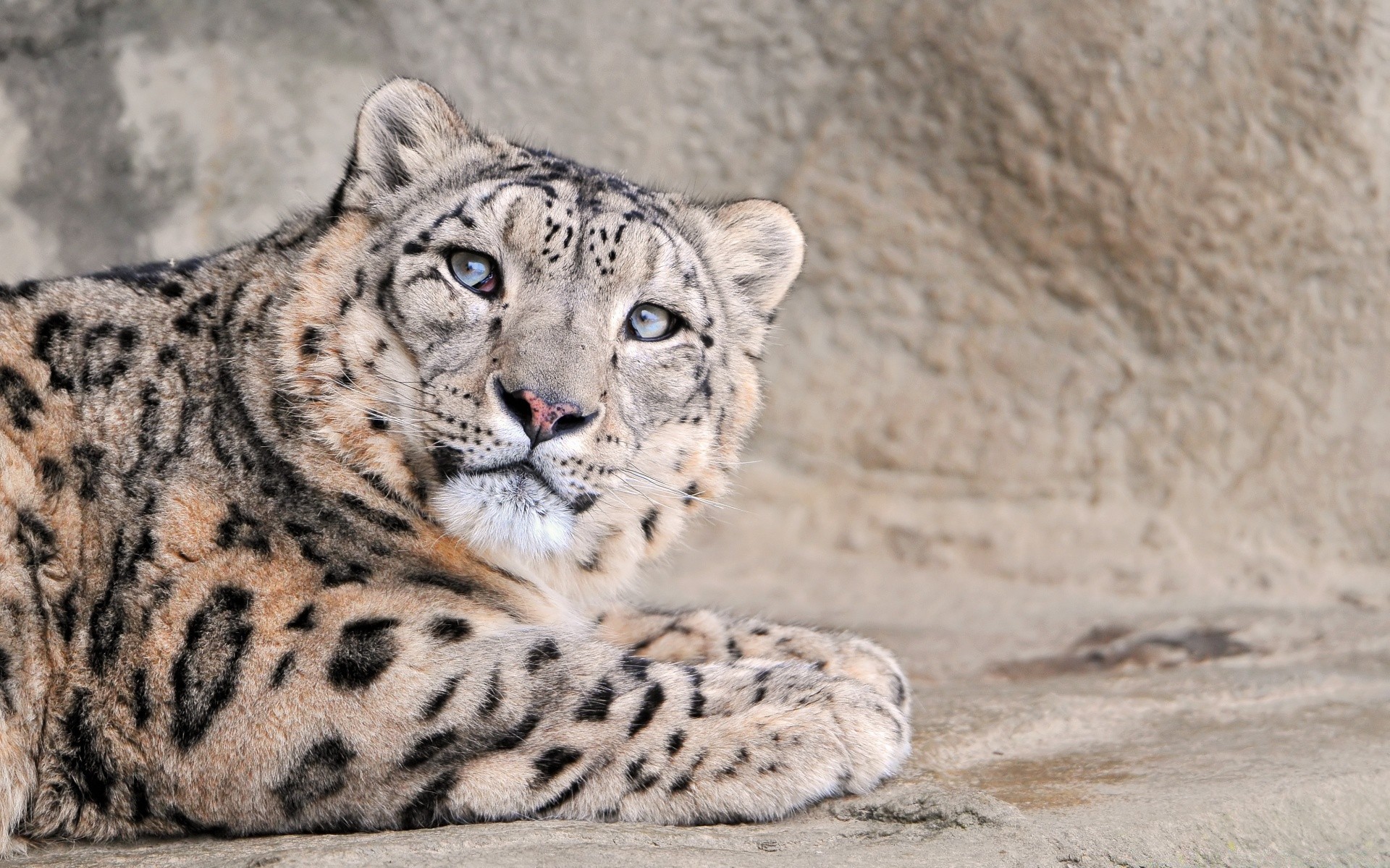 Ein schwarz-weißer Löwe blickt in die Kamera