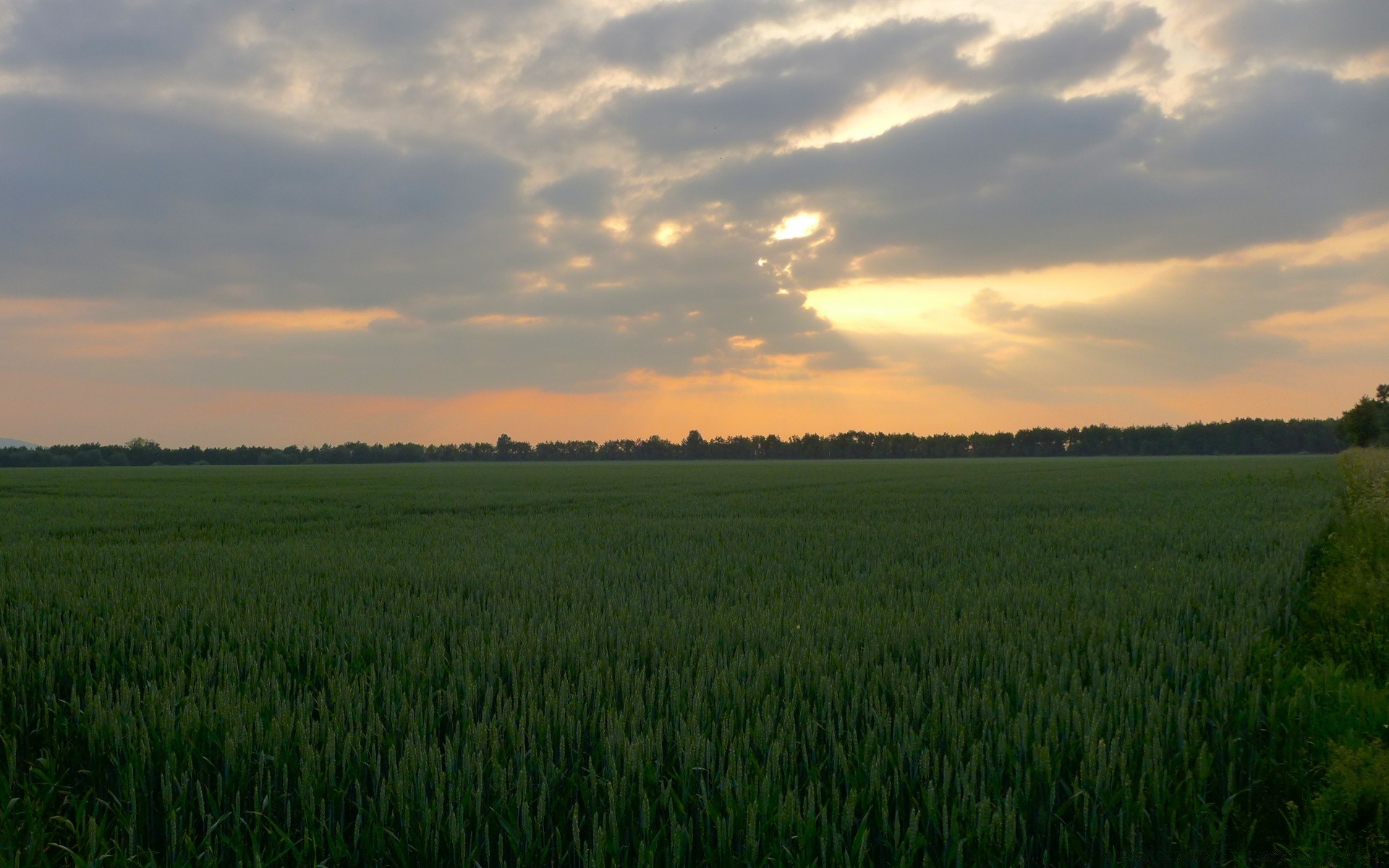 Die brennenden Schattierungen des Sonnenuntergangs im Feld