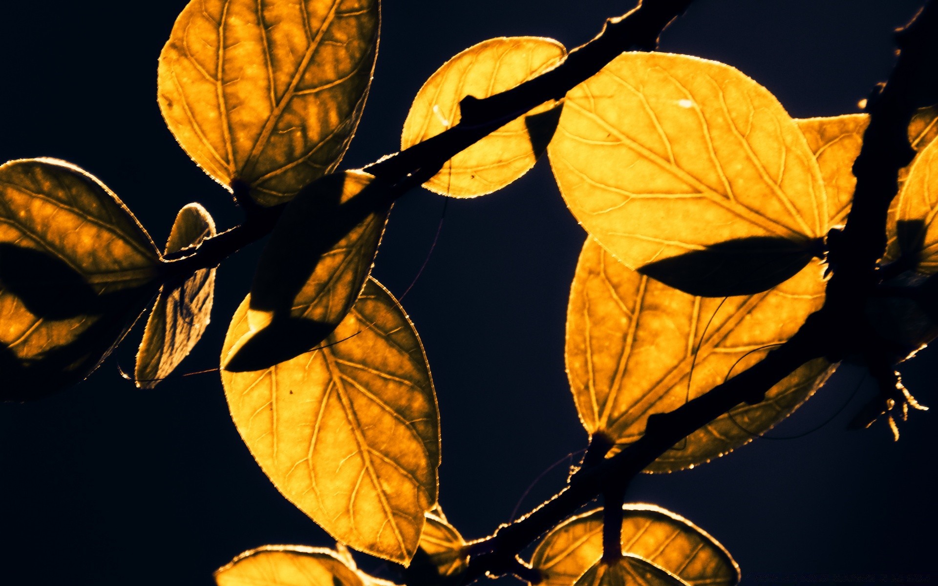 Makro von gelben Blättern auf dunklem Hintergrund