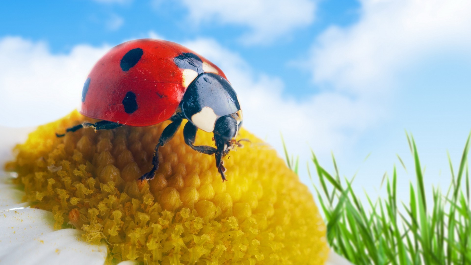 Marienkäfer auf einem verschwommenen Hintergrund einer Blume