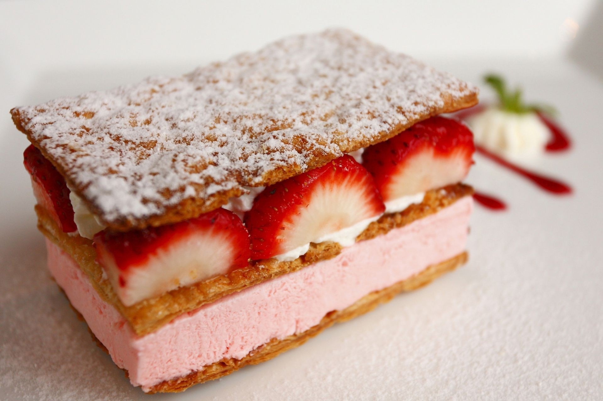 Ein Stück leckeren Kuchen mit Erdbeeren