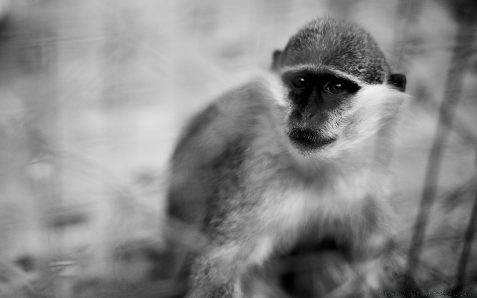 Gruppe von Touristen am Fluss Schwarz-Weiß-Foto